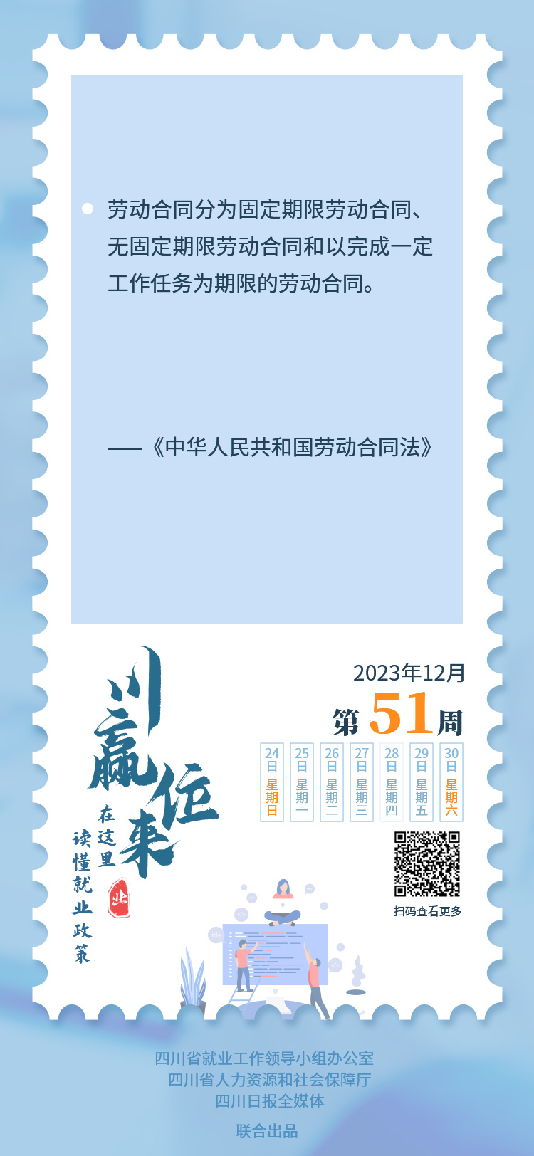 劳动合同的签订,是为了保护我们劳动者的合法权益,大家都知道要与用人单位签订劳动合同,但是劳动合同有哪些类别?如何确定我们应该与单位签订哪类劳动合同呢?本期“川赢位来.就业政策”周历,我们一起来了解有关劳动合同种类的事儿。