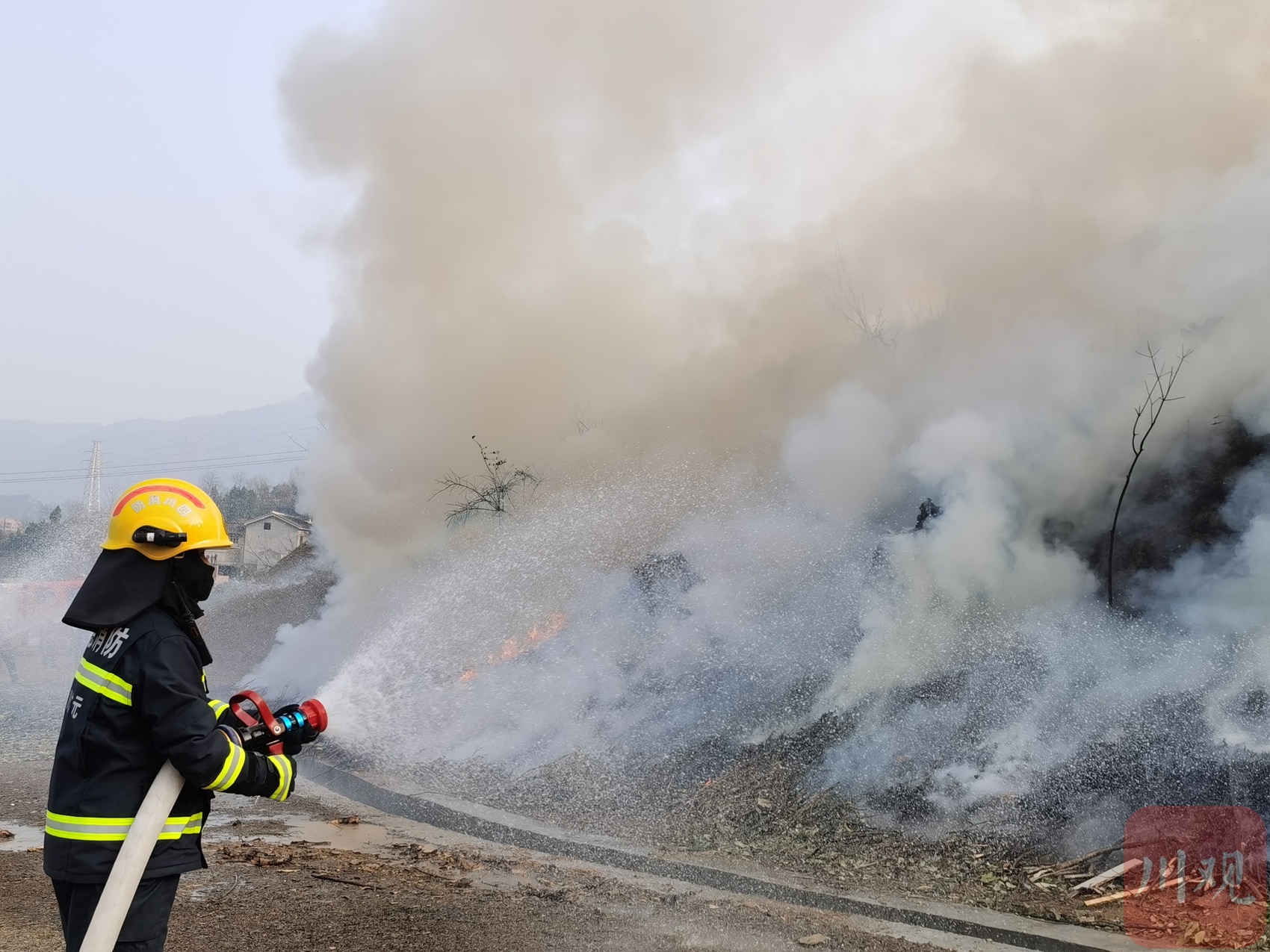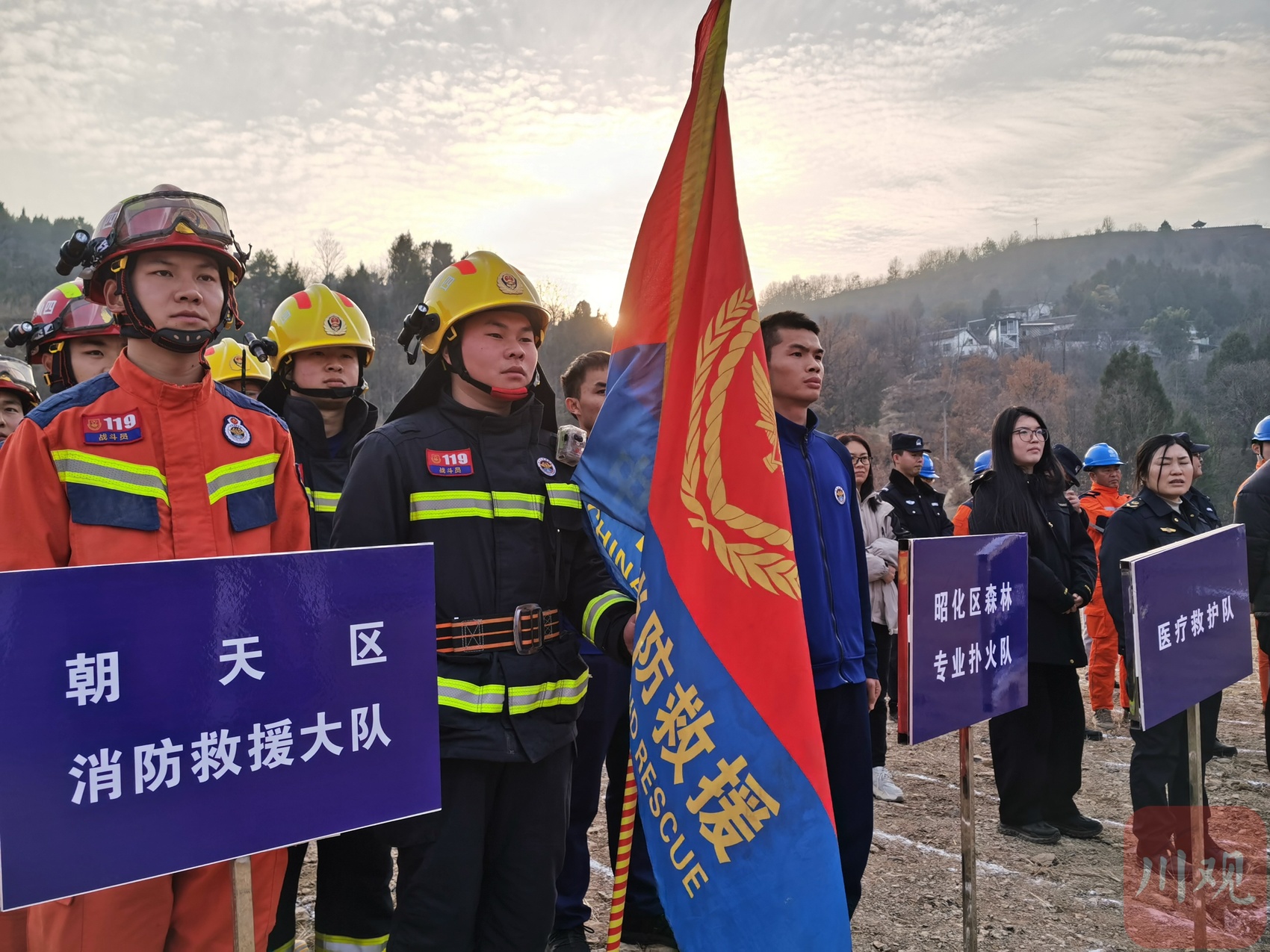 本次演练,模拟朝天镇金堆村二组某村民因祭祀用火引燃了林区落叶枯木,继发森林火灾为背景,触发村、镇、区、市级森林火灾扑救组织启动应急响应。