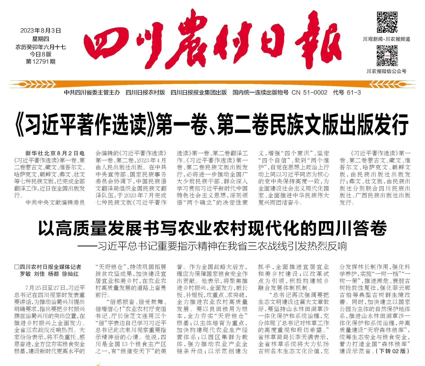 全省三农战线反响热烈。大家纷纷表示,将不负重托、感恩奋进,全方位夯实粮食安全根基,建设新时代更高水平的“天府粮仓”,持续巩固拓展脱贫攻坚成果,加快建设宜居宜业和美乡村,在农业农村高质量发展的道路上奋勇前行。
