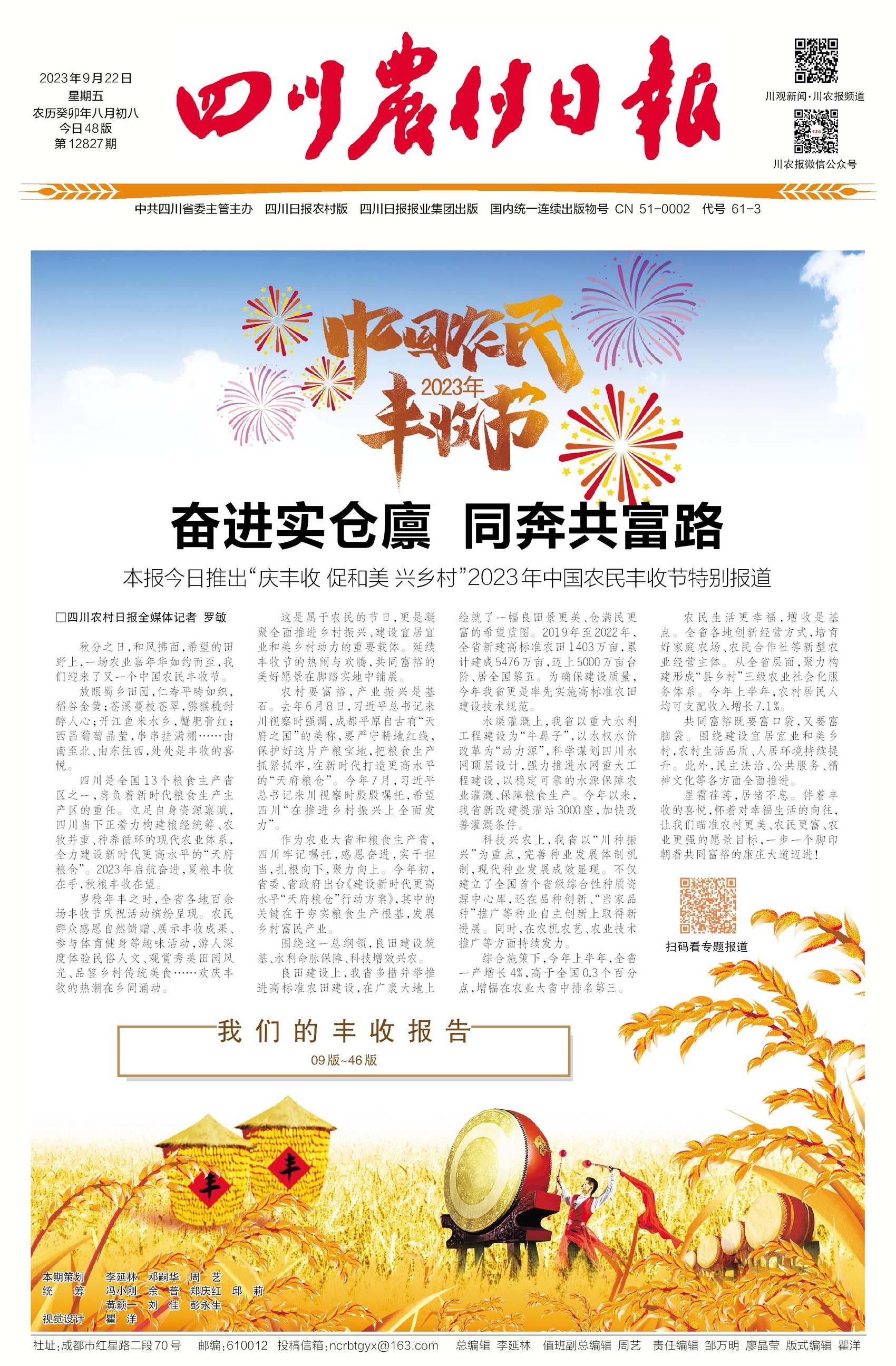 岁稔年丰之时,全省各地百余场丰收节庆祝活动缤纷呈现。川农报推出48版精品特刊、用10万字百幅图全景呈现各地丰收的喜悦,推出《活力担当送祝福》系列全媒体报道,让更多人认识到这些扎根在三农一线的,可爱的新农人朋友们。