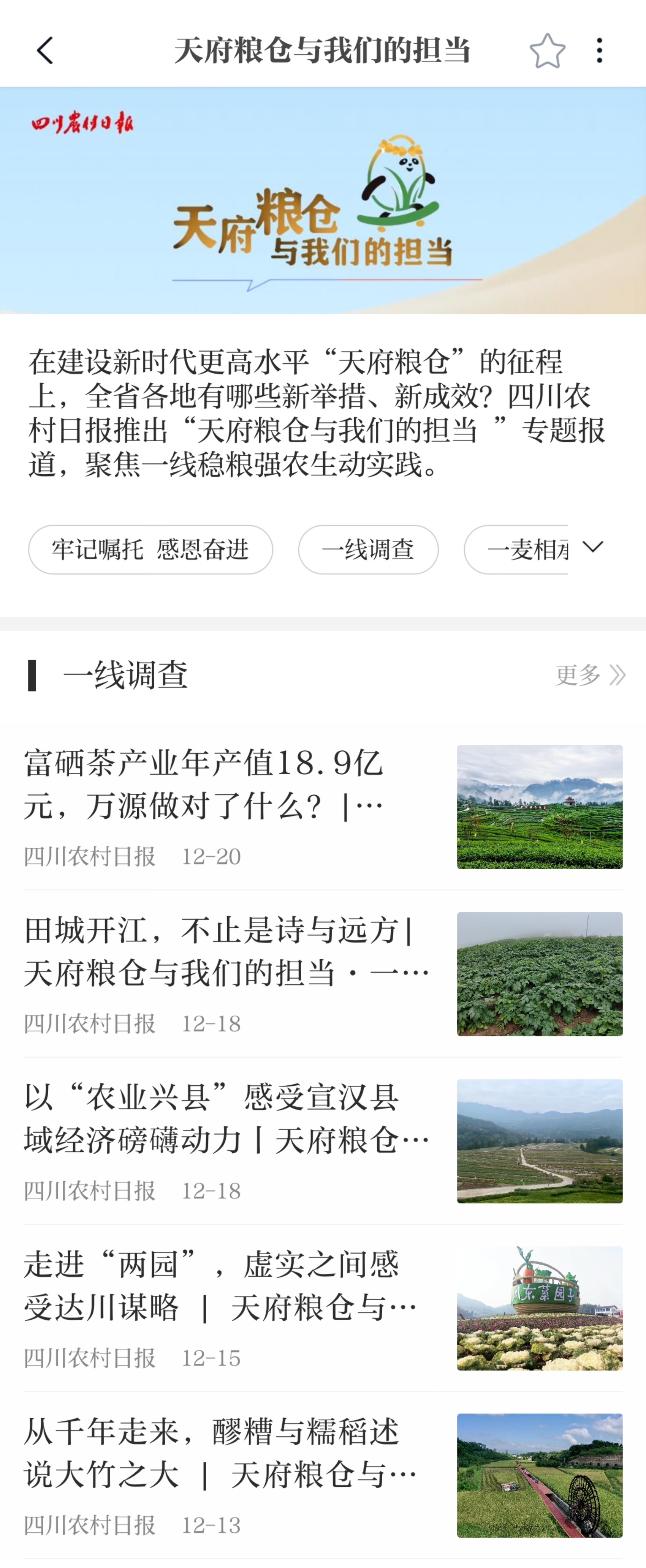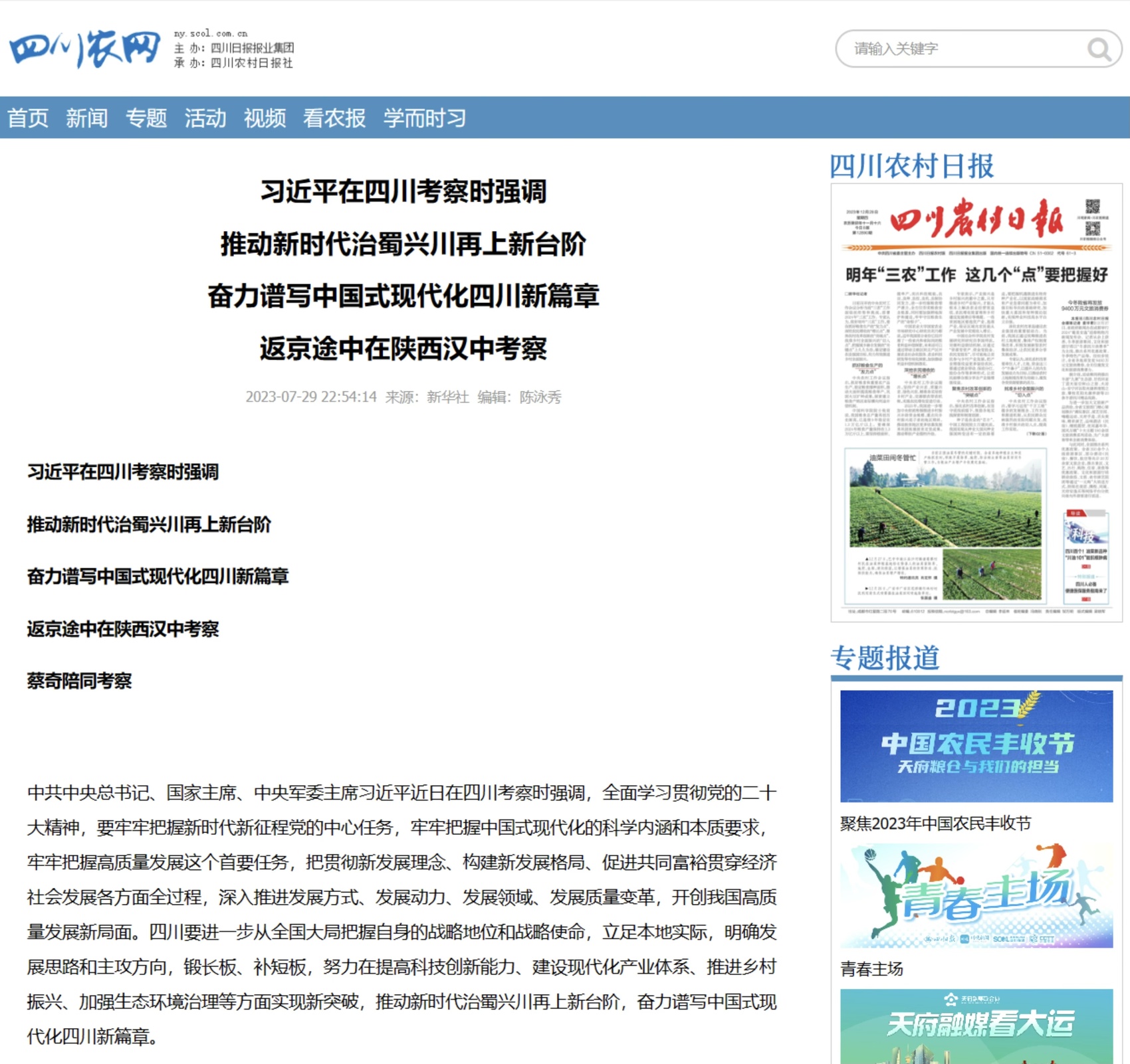川农报积极响应,启动“天府粮仓与我们担当·一线调查”、“走进天府粮仓”中省主流媒体采风活动等大型报道,多路记者走进市(州)、深入产粮大县,探访涉农组织,走近“三农”工作者,聚焦蜀乡一线稳粮强农的生动实践。