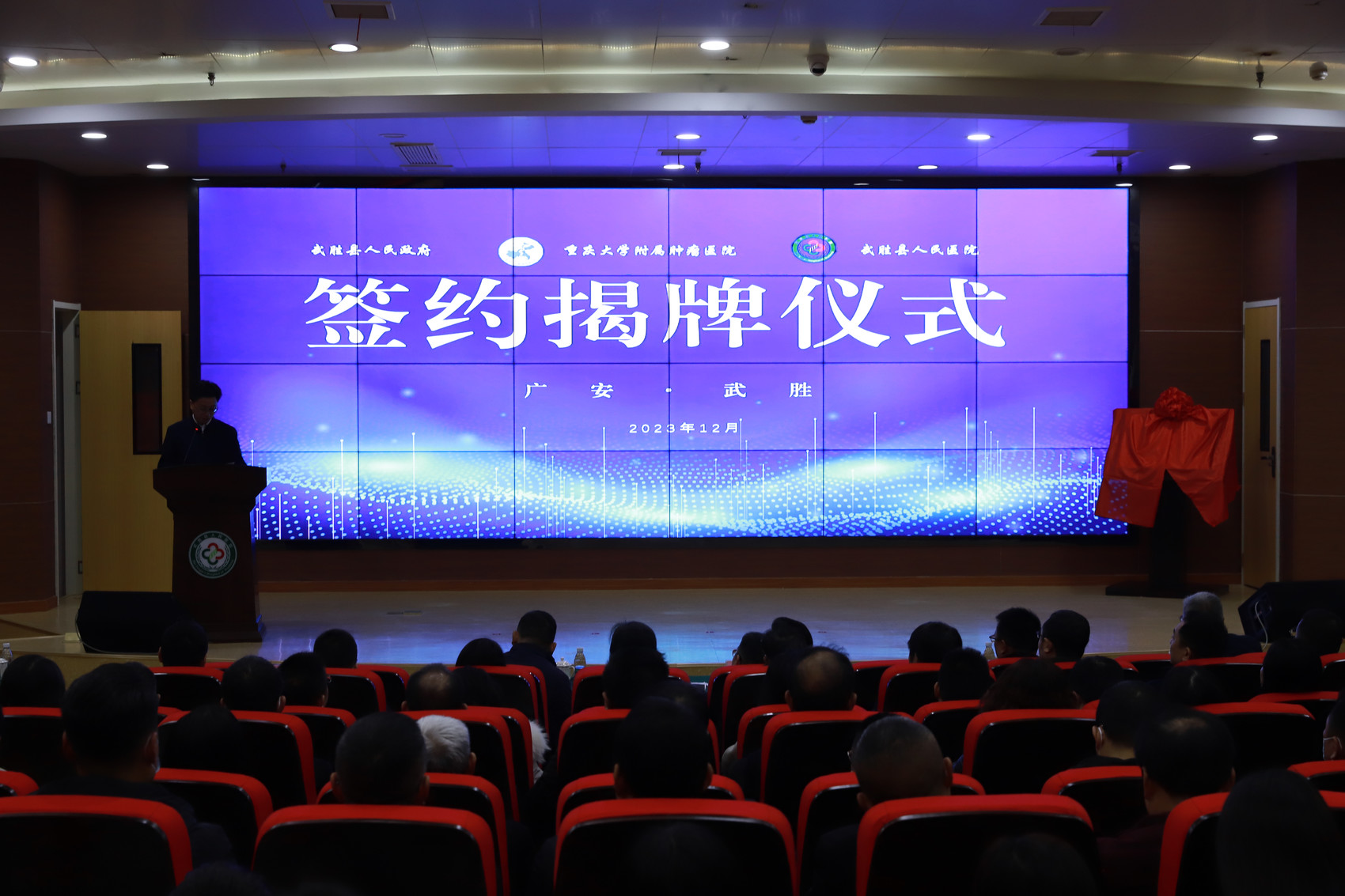 12月28日上午,重庆大学附属肿瘤医院武胜分院揭牌仪式在武胜县人民医院举行,重庆大学附属肿瘤医院与武胜县人民政府和武胜县人民医院分别签署了合作协议。