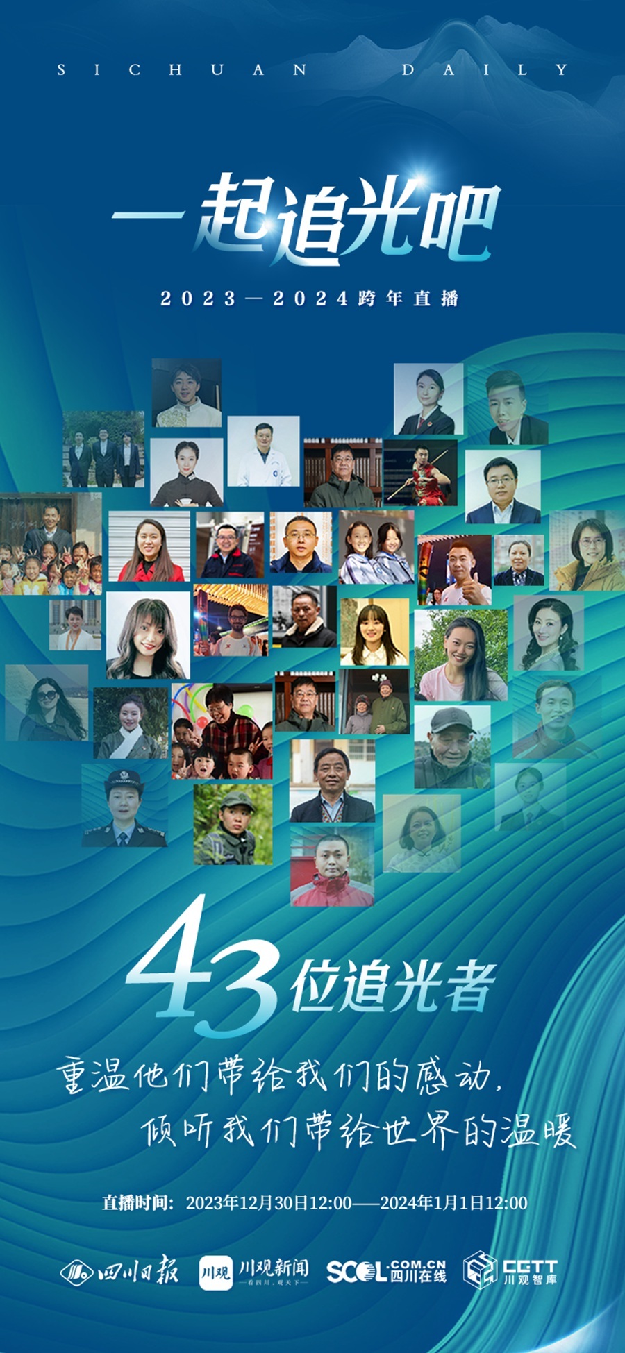 从平凡中来,向光而行,追光者们闪耀2023。这一年,川观新闻“追光·公益”不断上新,用实际行动做慈善,温暖大家;“追光·人物”“追光·暖新闻”,从未停止过追光的脚步。川观新闻跨年直播,与你一起重温追光者带给我们的感动,聆听他们的故事和带给世界的温暖。