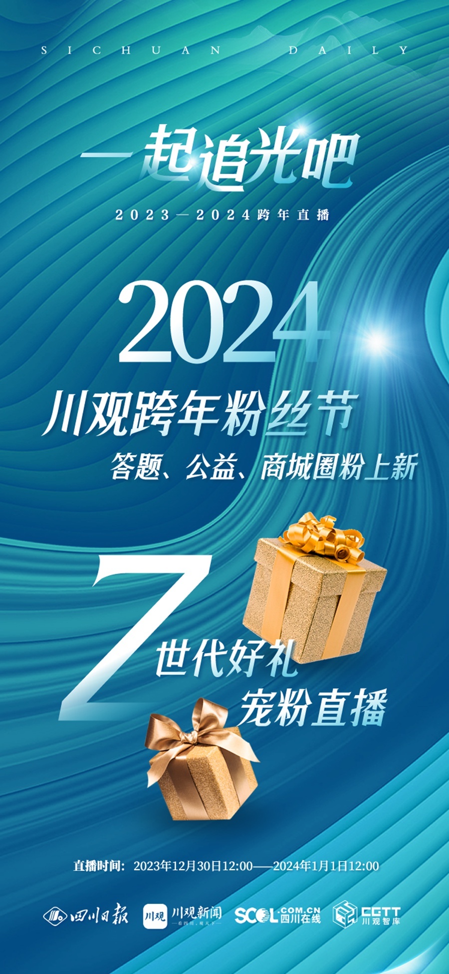 2023年12月30日12:00—2024年1月1日12:00,四川日报全媒体推出48小时跨年直播,和你一起蹚过时间的河流,以奋斗定义征途中的过去,以信心展望不确定的未来。同时邀请你与名医天团面对面,新的一年记得关爱自己,一起跨时区迎接新年第一缕阳光,携手大步向前,共赴2024。