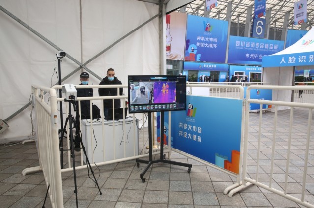 在展馆入口,记者看到组委会设置了四道“关卡”——验码区、健康码检查、人脸识别和安全检查。入场人员须在完成实名认证、出示天府健康码并人脸识别成功才能进行安全检查,进入展馆。安全检查区采用红外测温系统,确保每一位入场人员体温正常。