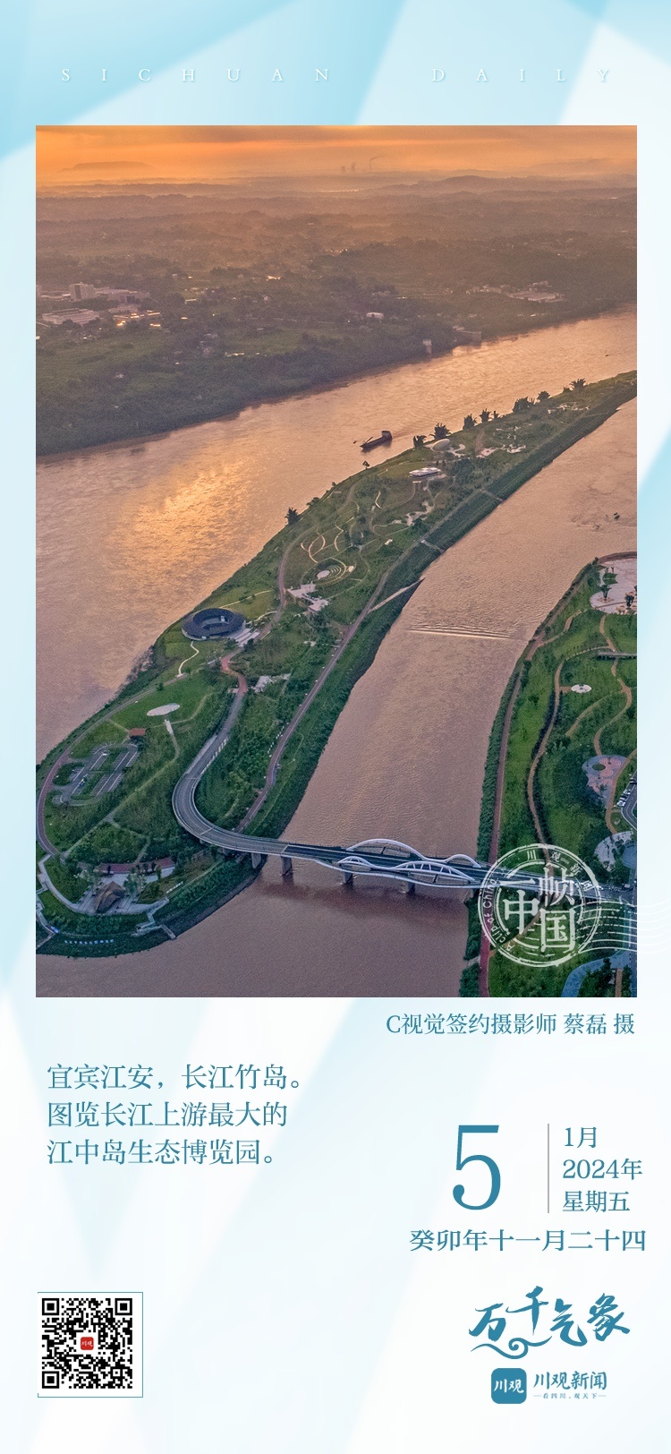 今天的《一帧中国》带您图览位于宜宾市江安县的长江竹岛。漫步其中,竹林环绕花草相间,仿佛置身于一幅优美的风景画之中。