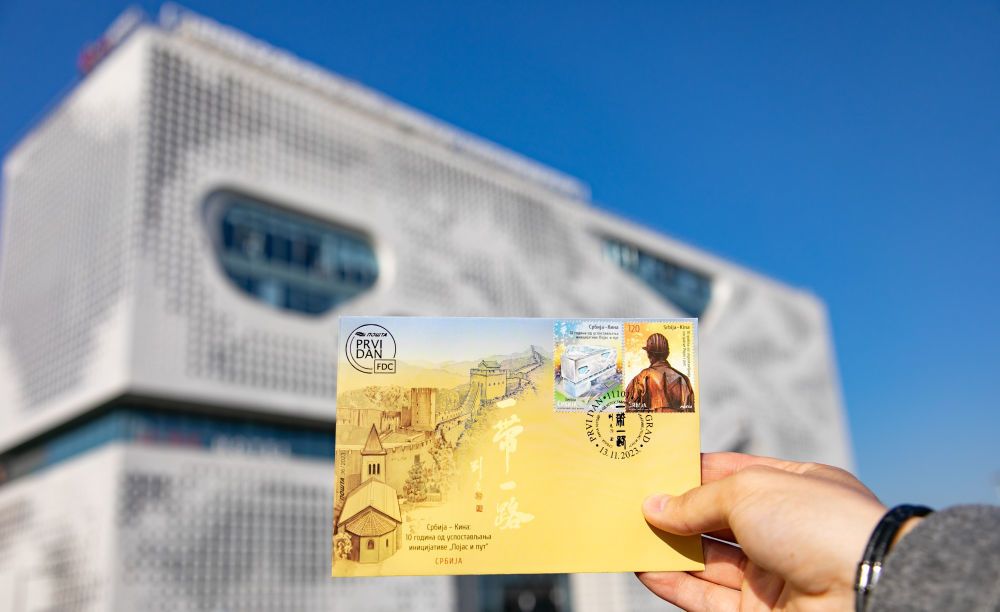 塞尔维亚邮政局12月28日在贝尔格莱德中国文化中心发行两套中国主题邮票,纪念“一带一路”倡议提出十周年,同时展示中国的文化与自然遗产。