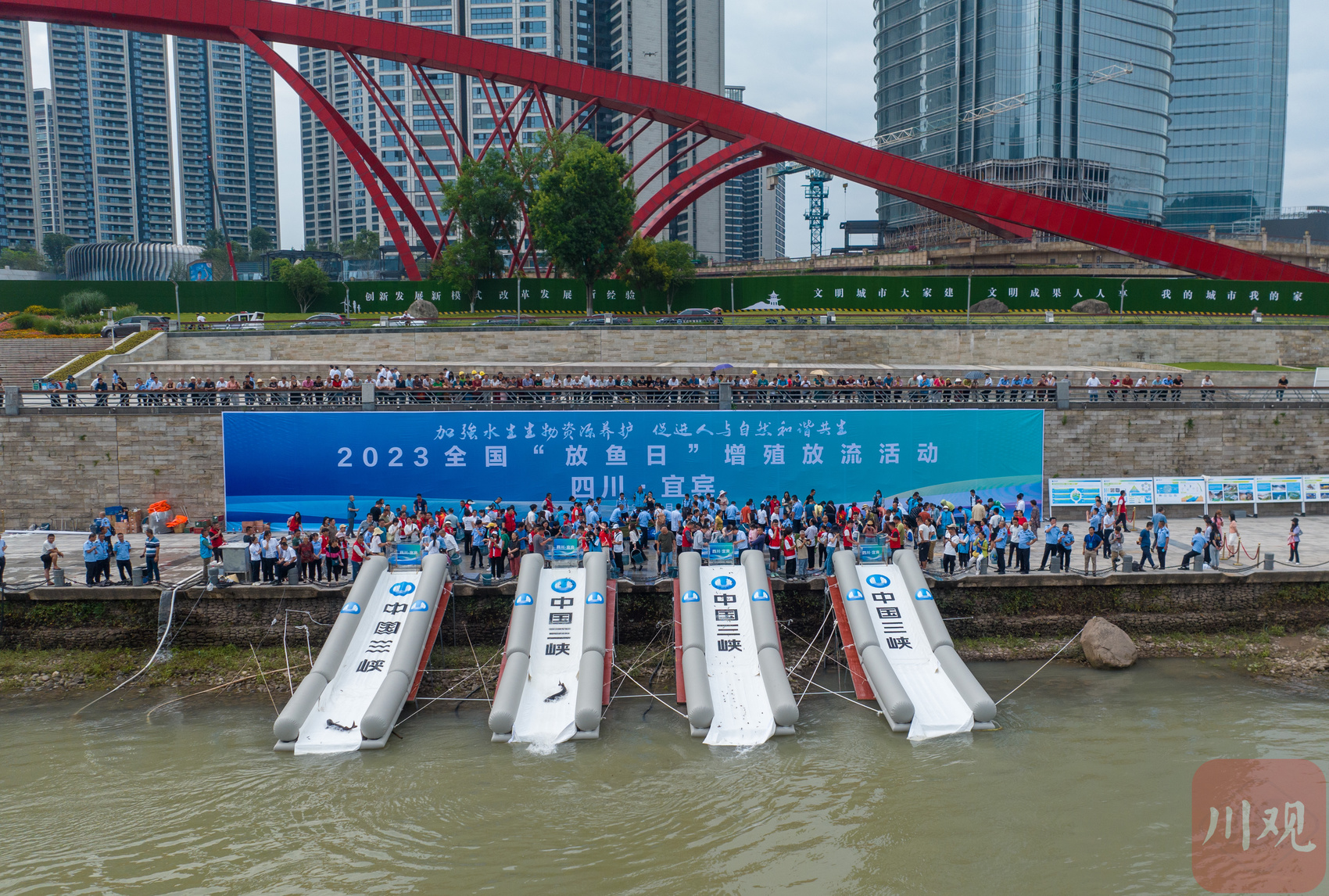 6月6日,宜宾放流长江鲟、胭脂鱼等鱼苗112万尾