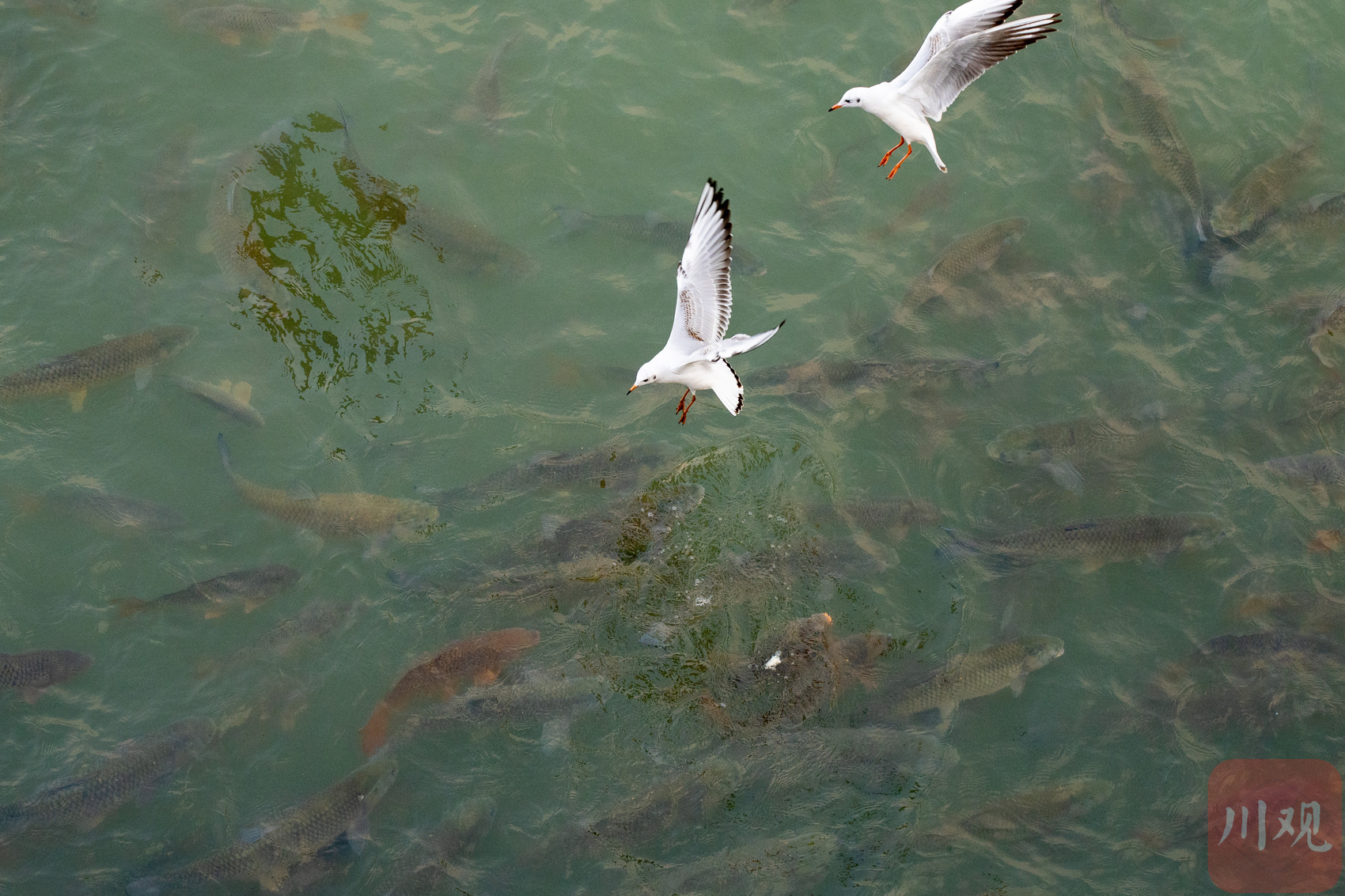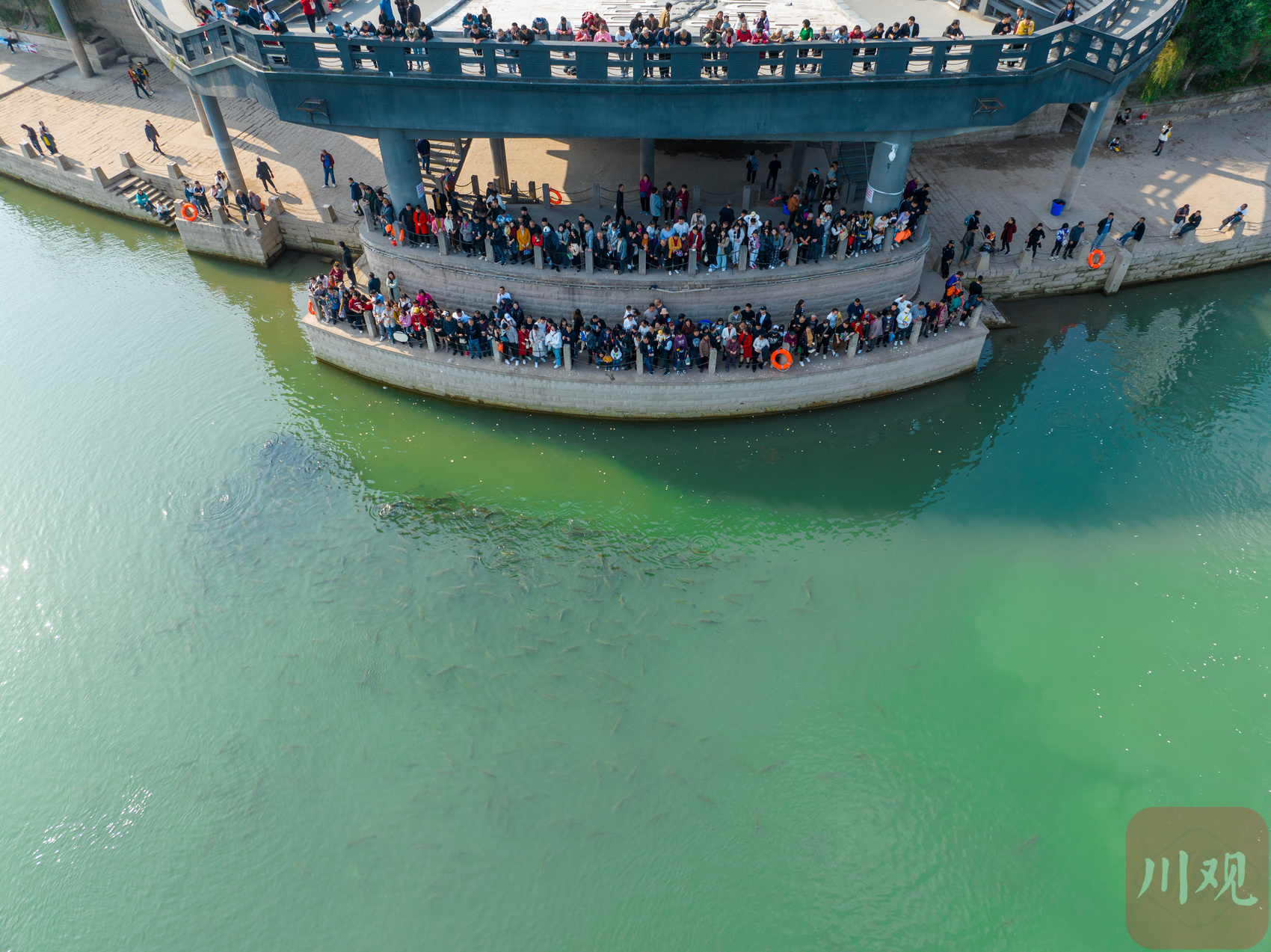 11月29日,宜宾变“鱼宾”,游客在三江口喂鱼打卡