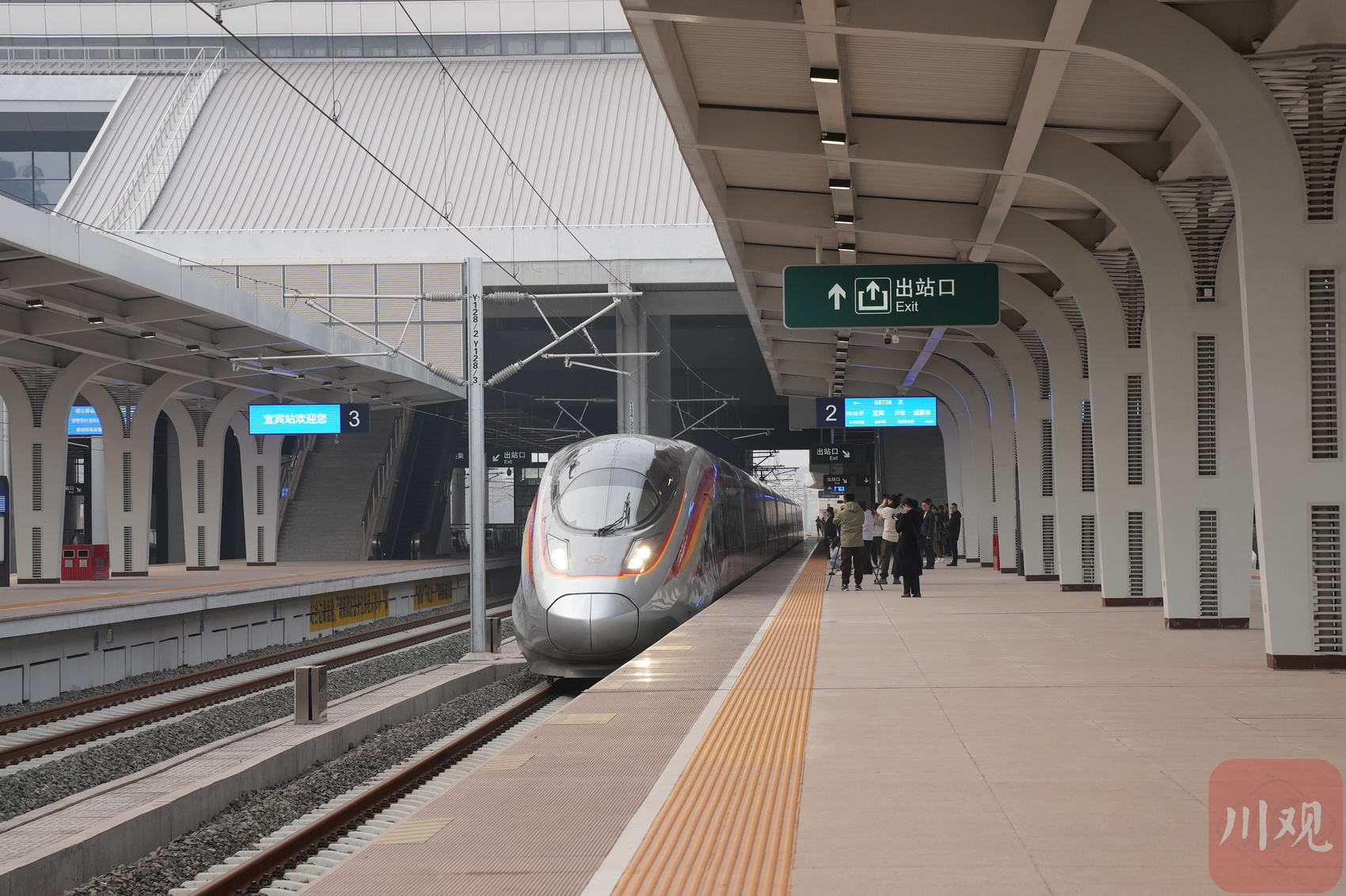 12月26日,成宜高铁首发列车从宜宾站出发,驶向成都东站