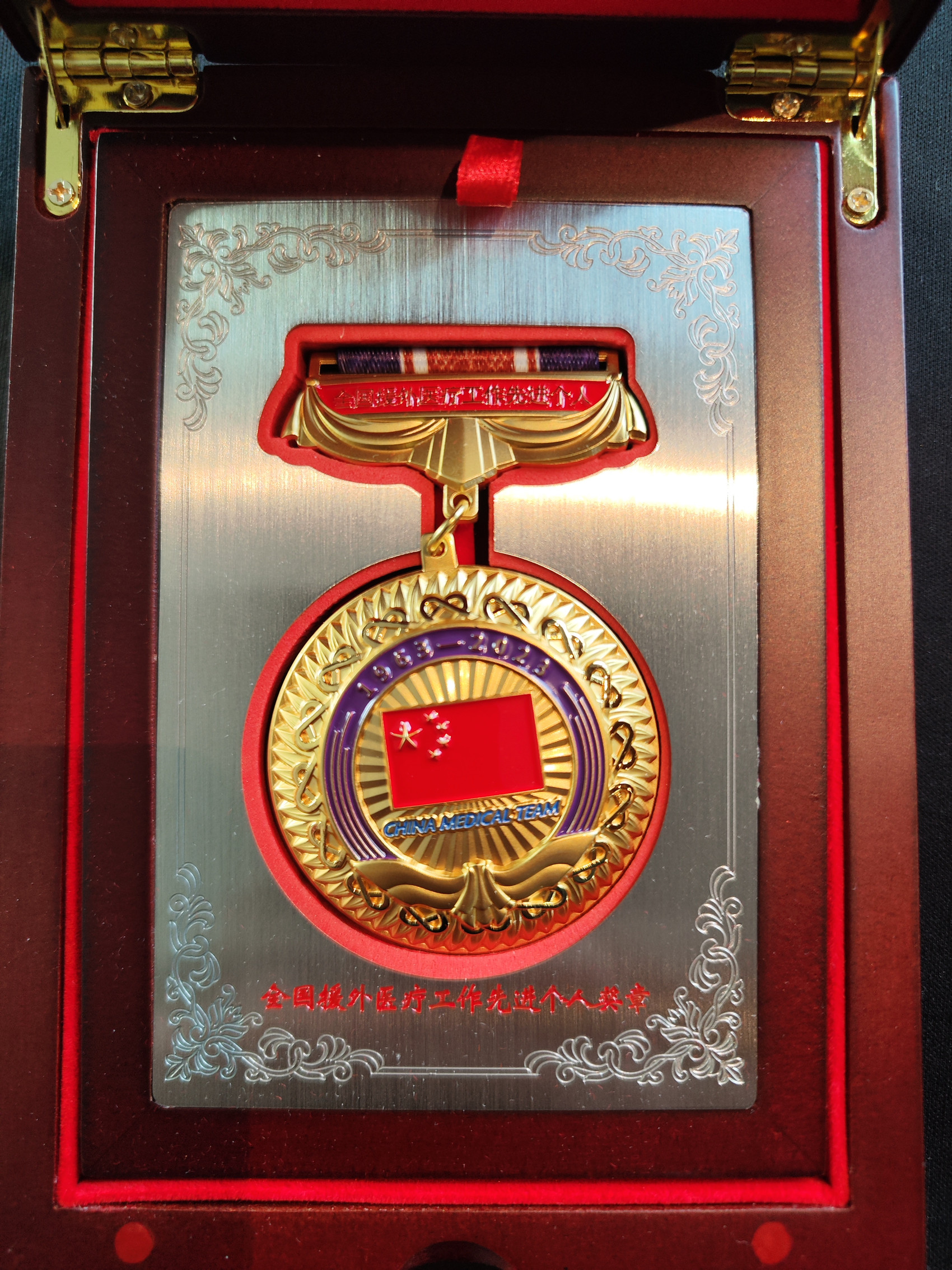 “全国援外医疗工作先进个人”奖章。受访者供图