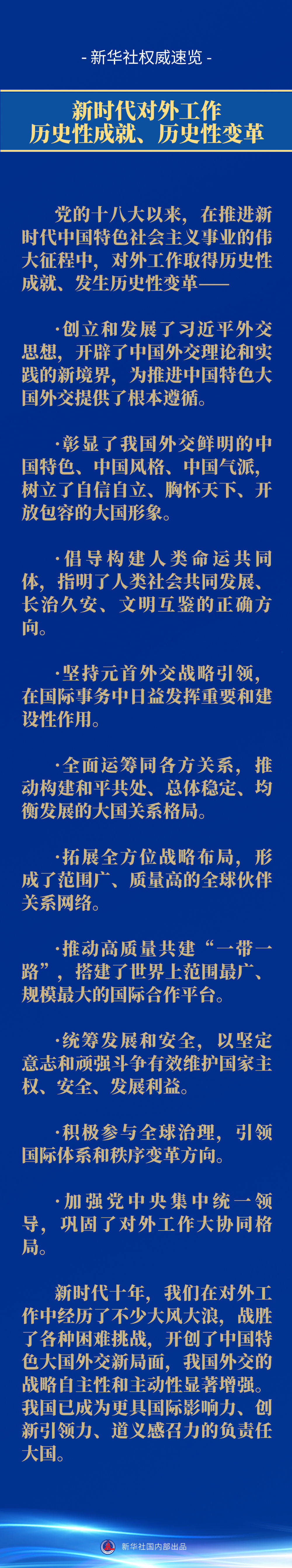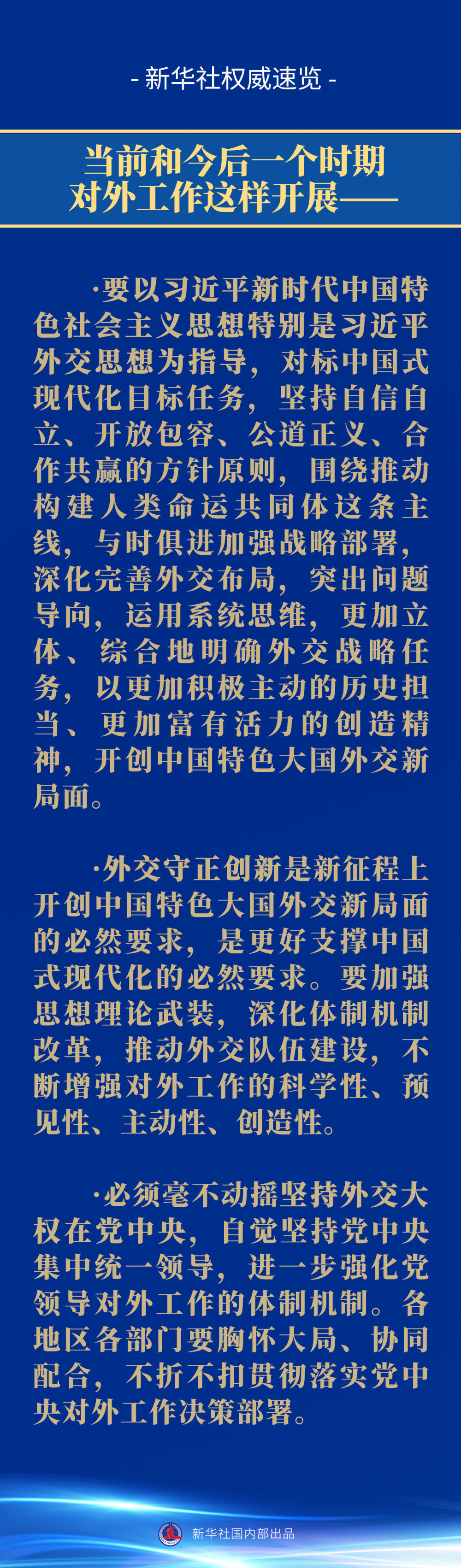 加强党中央集中统一领导,巩固对外工作大协同格局。