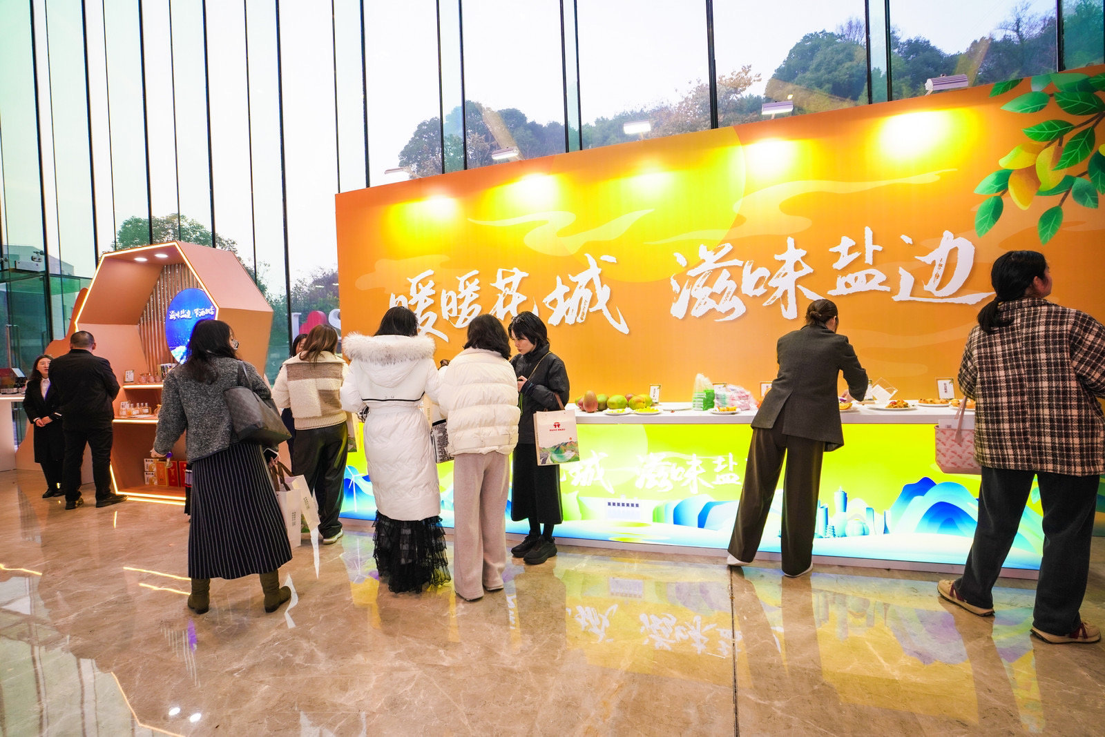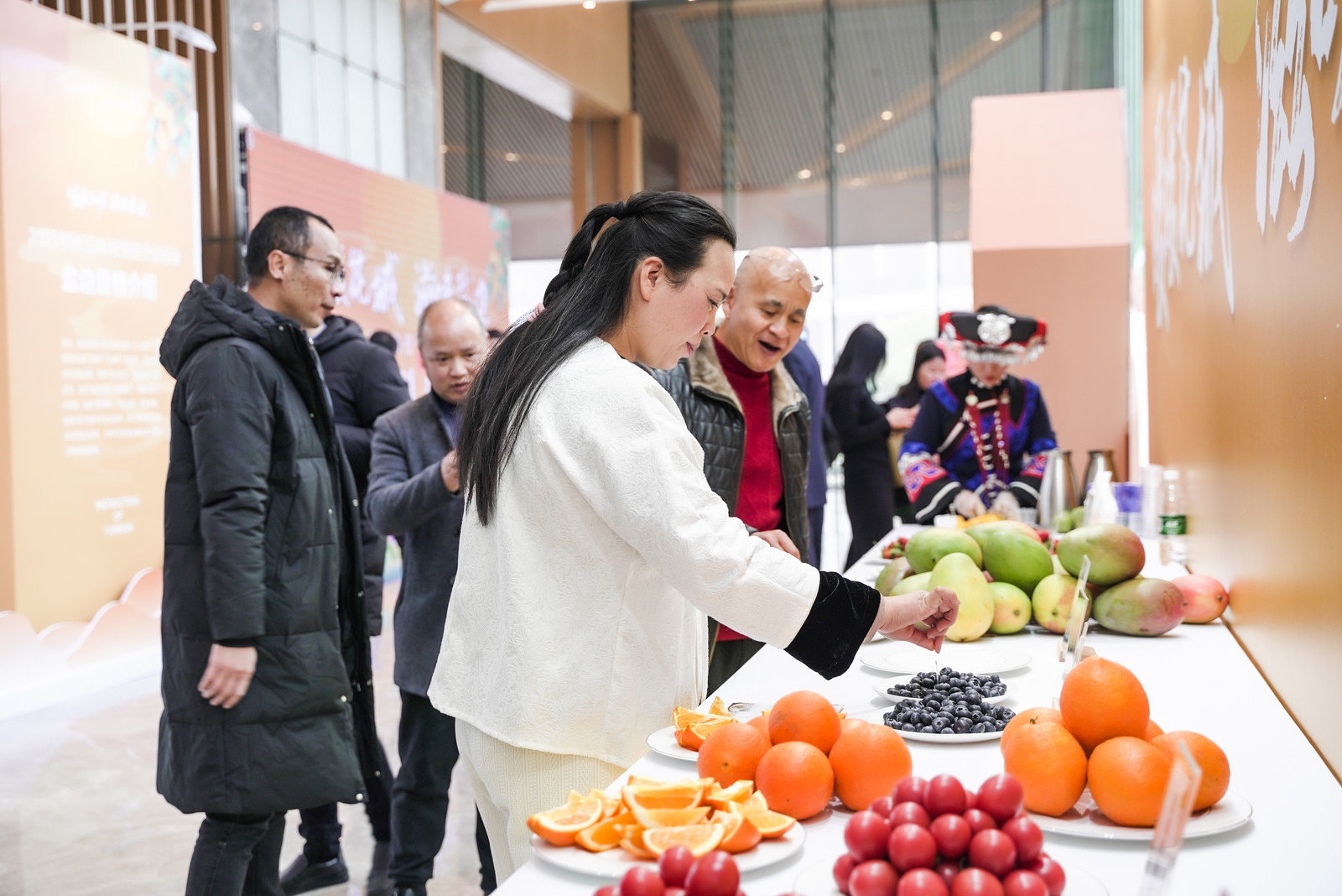活动现场,盐边县还展示了盐边羊肉米线、“攀果”果干、油底肉、笮酒等当地特色展品,引得客商们驻足观赏品尝。