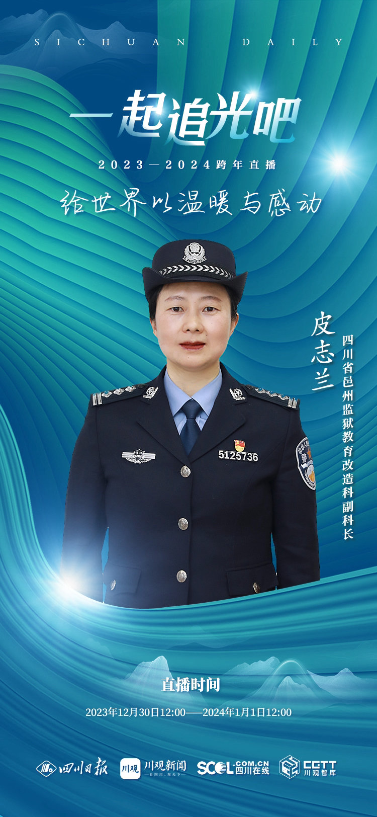 在“川观新闻“48小时跨年直播”中,川观新闻记者采访了2023年度“四川十大法治人物”、四川省邑州监狱教育改造科副科长皮志兰。