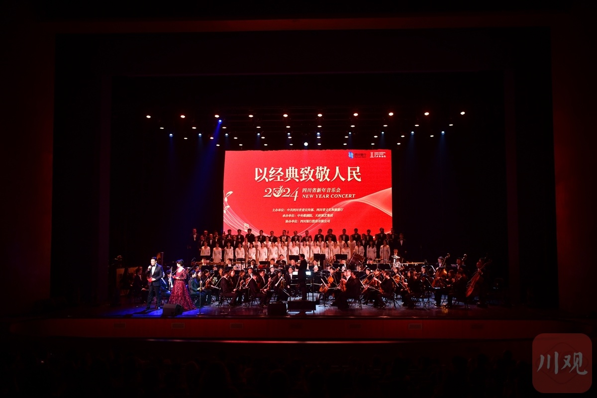 12月31日晚,由四川省委宣传部、四川省文化和旅游厅联合主办,中央歌剧院、四川天府演艺集团联合承办,四川银行股份有限公司协办的“以经典致敬人民”2024四川省新年音乐会在四川大剧院举行,通过一台名家汇聚、名段荟萃的音乐晚会,向辛勤耕耘的全省各行各业人民群众致以节日慰问,同时拉开了新年惠民音乐系列活动的序幕。