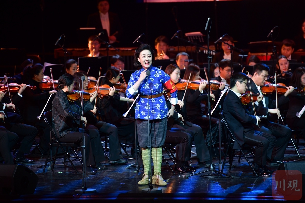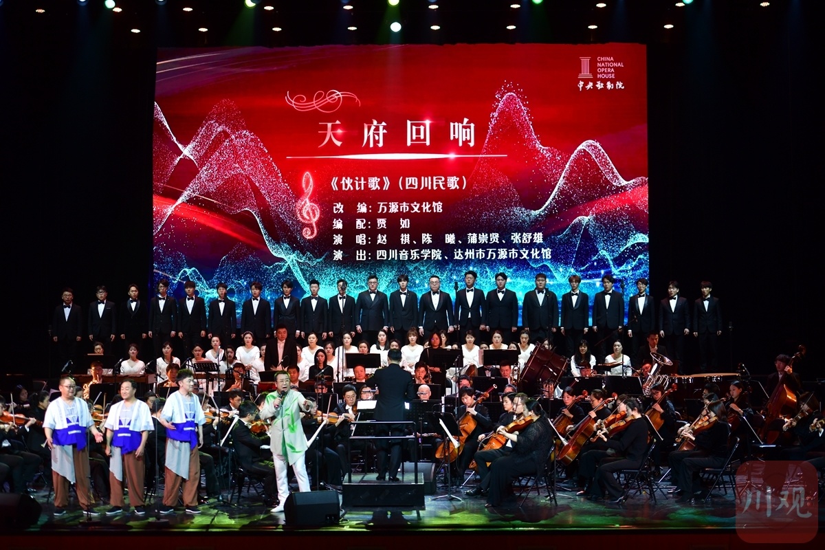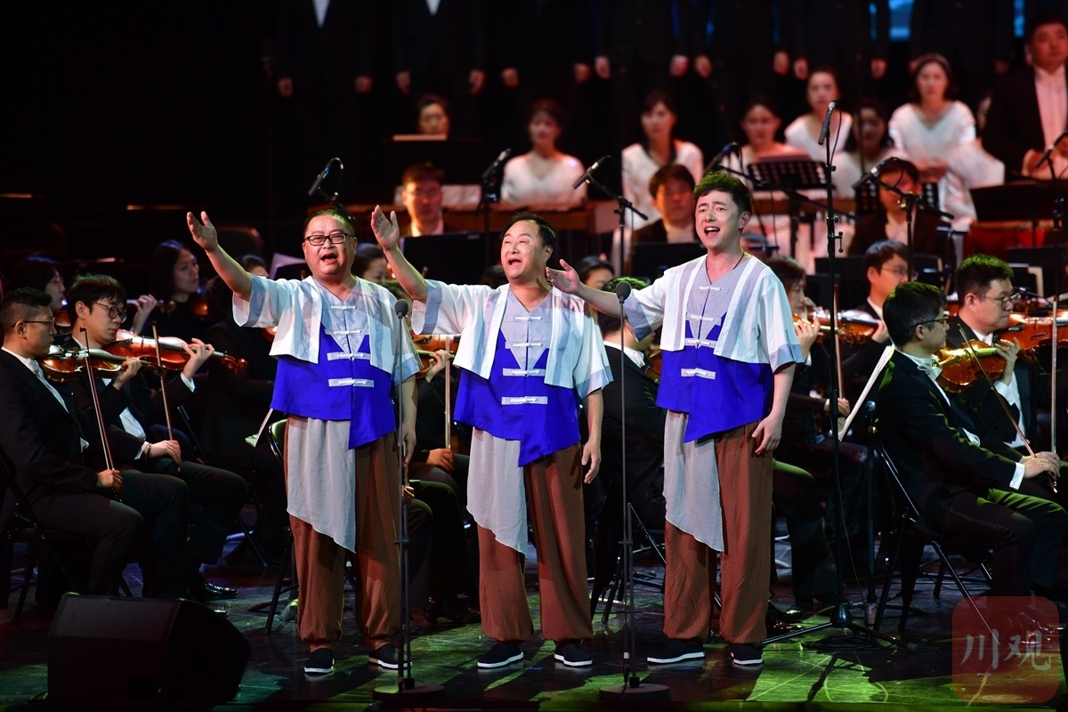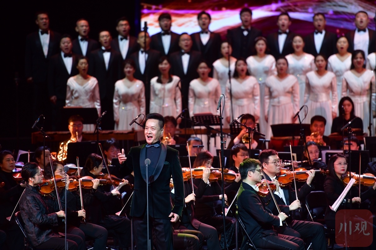 在一声声悠扬婉转的“伙计”中,“天府回响”在四川民歌《伙计歌》中展开,呈现四川热情洋溢、纯真质朴的浓厚民族风情。随后,《卓玛》《绣荷包》《秀才过沟》等展现四川地方韵味的经典歌曲唱响,尽显自然与人文交相辉映的巴风蜀韵。