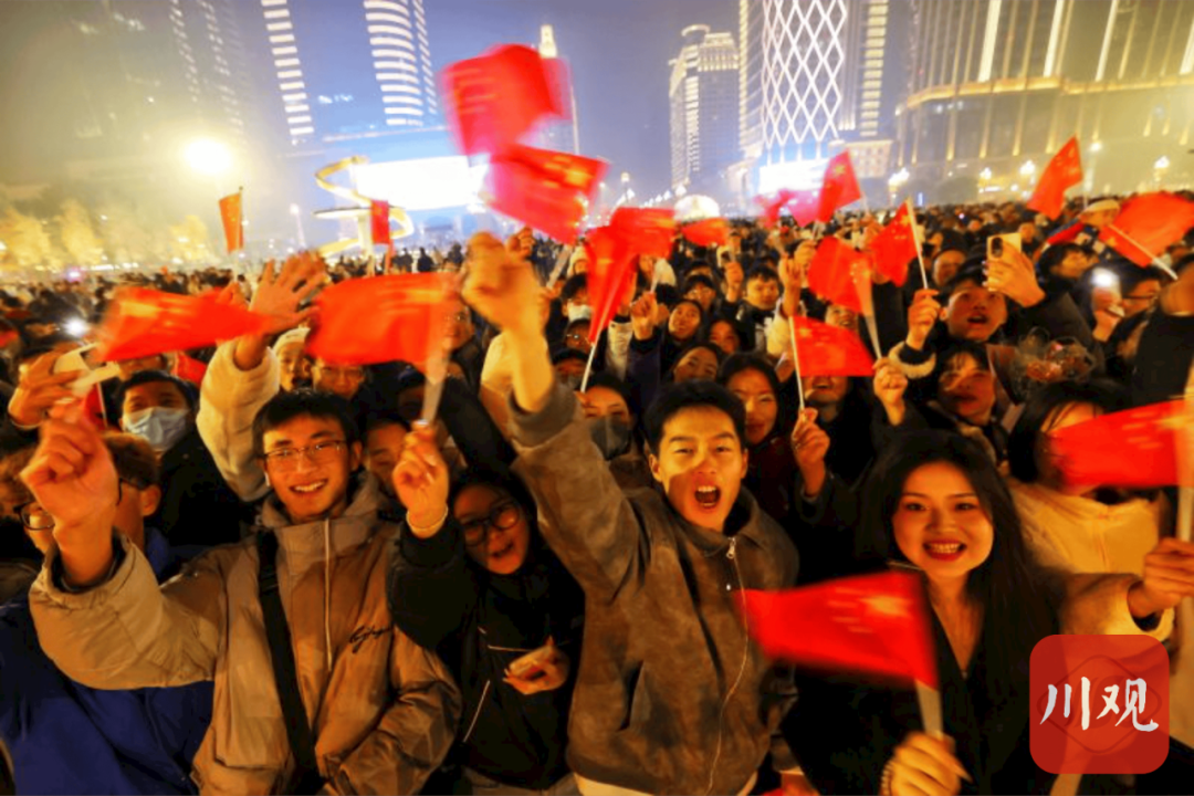《义勇军进行曲》演奏完毕,国旗升至顶端,人群的热情也被点燃。“祖国万岁!”“新年快乐!”“我爱祖国!”欢呼声此起彼伏,天府广场热闹非凡。记者在现场看到,升旗仪式结束后,大家依旧不愿离去,彼此合影留念,一起迎接新的一年到来。
