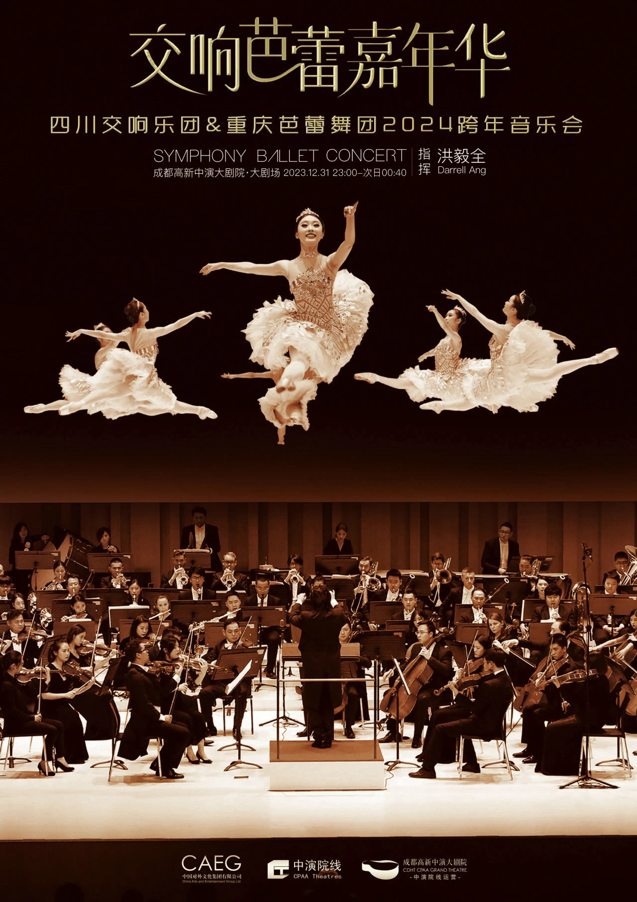 跨年交响芭蕾嘉年华,在国际乐坛杰出的新一代指挥家洪毅全带领下,与海内外优秀的艺术家合作,持续近110分钟的晚会中,观众掌声雷动、高潮迭起。经典名曲真挚动人、富有深刻音乐诗意,为芭蕾舞蹈注入灵魂;交响乐和芭蕾的现场交融,足尖上的旋律,乐与舞融为一体。热情奔放的《西班牙舞曲》,舞者多变的舞步带动裙摆的飞旋,饱含激情,动感十足;满含牧民生活气息的经典歌曲《可爱的一朵玫瑰花》,将草原上的深情、优美与诙谐进行表达;耳熟能详的川渝民歌佳作《太阳出来喜洋洋》,展现川渝两地人民勤劳勇敢、积极向阳的性格品质以及对新时代生活的坚定信心与向往之情。如此一场交响芭蕾视听音乐会,成为献给川渝两地观众2024跨年夜的一份有诚意的新年音画礼物。