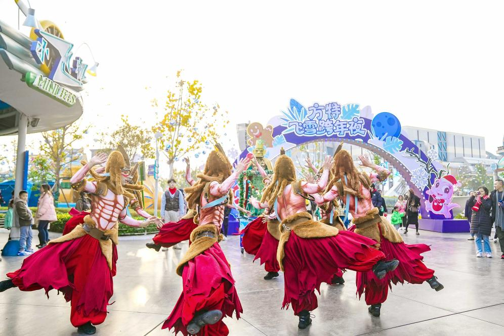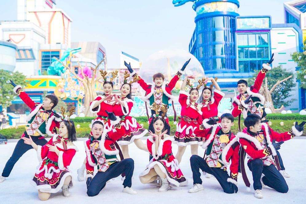 各式各样的演艺互动也让跨年更加精彩。互动体验感超强的“冰雪心愿屋”,惊喜亮相园区各处的“雪国天团”以及舞蹈演出“雪球精灵”“冰雪派对”,都为游客带来了不同的游园体验。