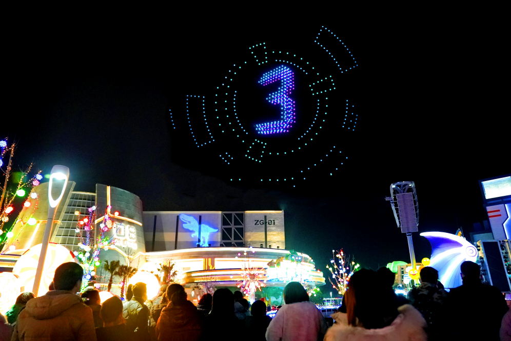 当“星空穿越剧”无人机秀在星空谢幕,紧接着的零点钟声又将现场万余游客拉近跨年倒数的热潮中。在这万人鼎沸的时刻,迎新烟花璀璨绽放,游客们纷纷放飞手中的气球,共同感受此刻的欢乐与温馨。