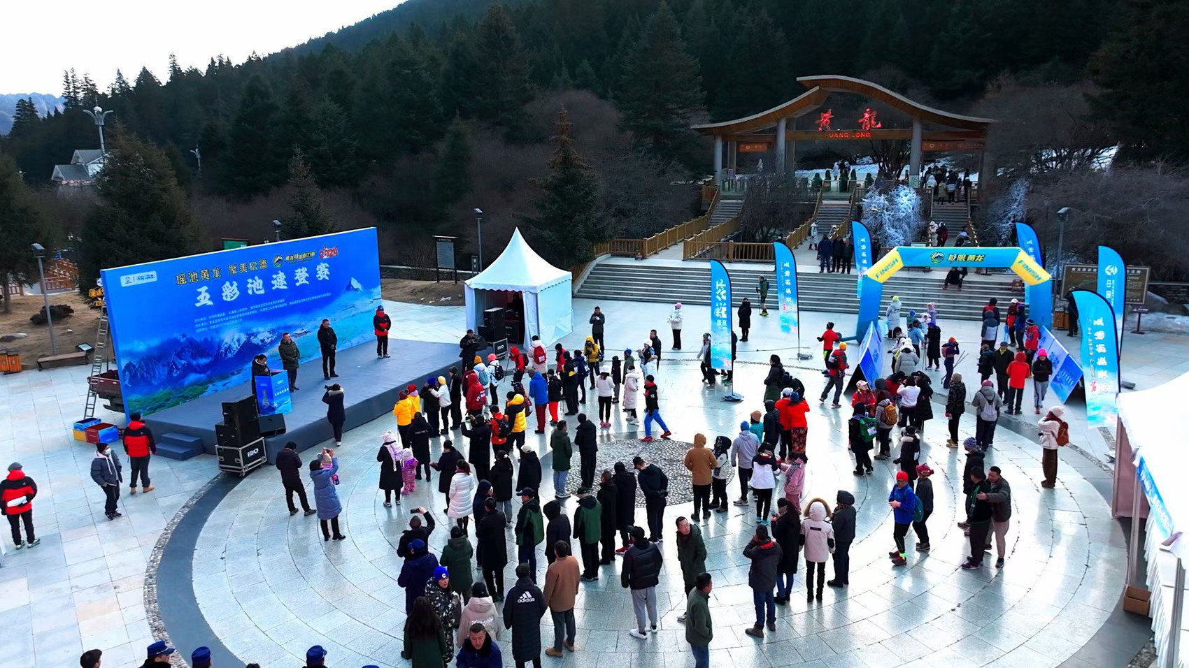 1月1日,迎着新年的第一缕阳光,“瑶池黄龙 聚美松潘”黄龙极限耐力赛·2024五彩池速登赛在白雪与彩池相映的黄龙景区举行。