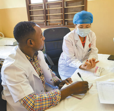 授人以鱼,更要授人以渔。中国医疗队在桑给巴尔组织多期线下多学科知识培训和技术带教,“手把手”传授先进技术,交流诊疗心得。医疗队队员除了分享专业知识,介绍最新的医学研究成果、诊断技术和治疗方法,还带着当地医院的医生到临床参与实际诊疗,指导他们如何检查患者、制订治疗计划,以及与患者有效沟通。培训中,当地医生常常被中国医生的精湛技术和中医文化的博大精深吸引。