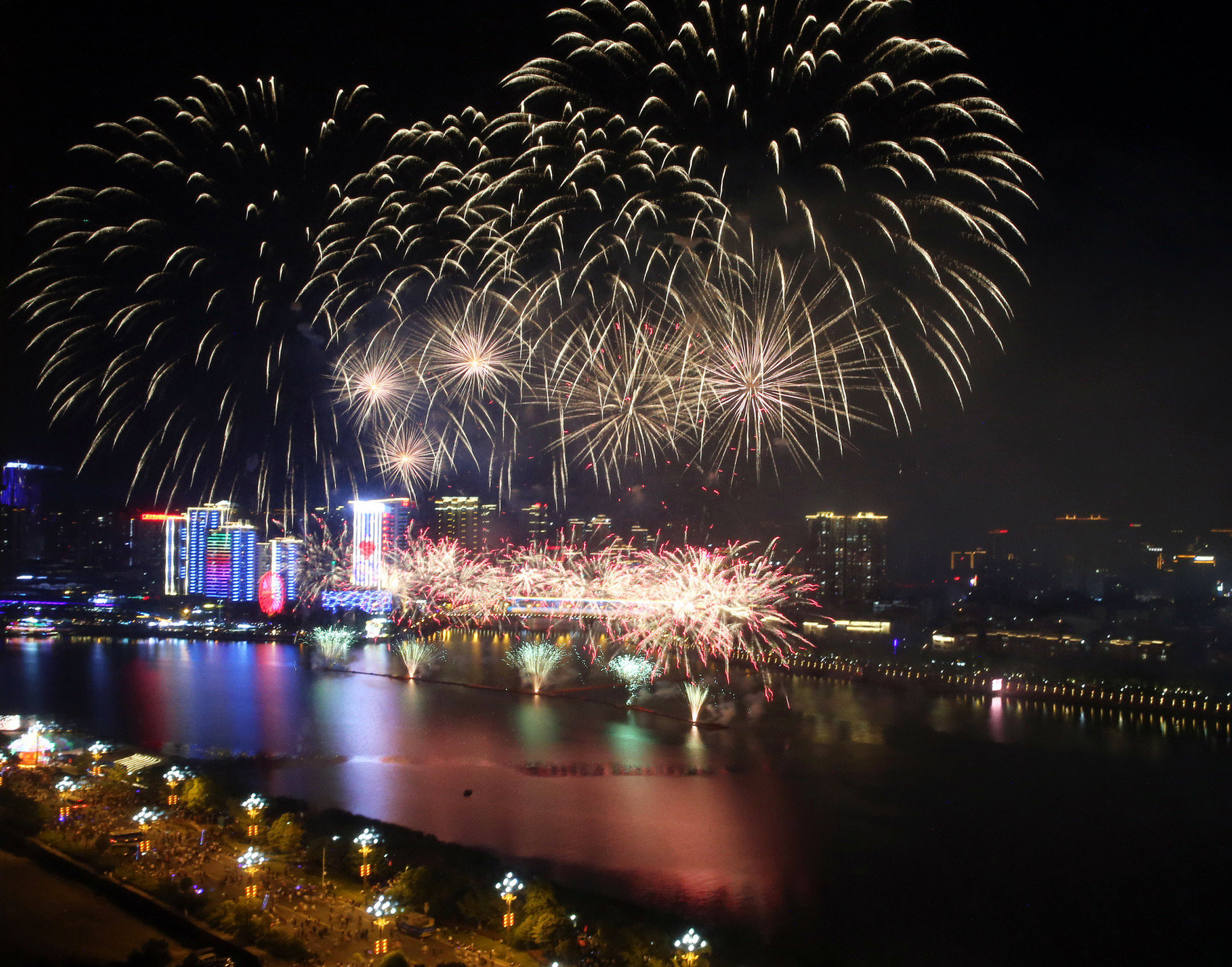 2023中国(广元)女儿节“凤凰涅槃·点亮广元”活动在嘉陵江畔璀璨上演。高志农 摄