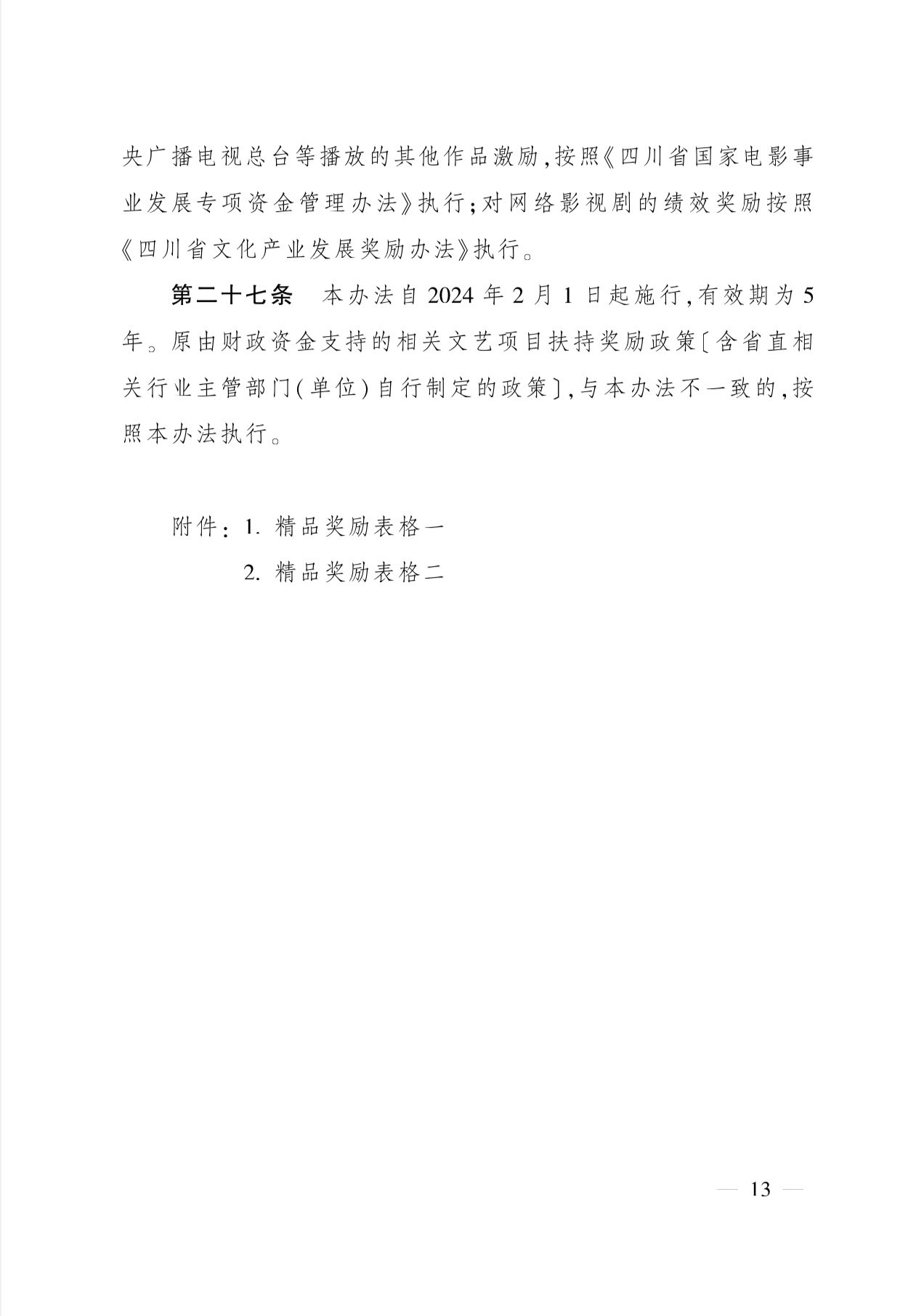 附:四川省重大文艺项目扶持和精品奖励办法