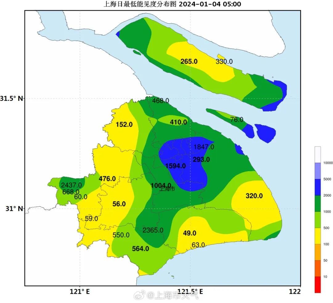 大部地区有能见度不足500米的浓雾,