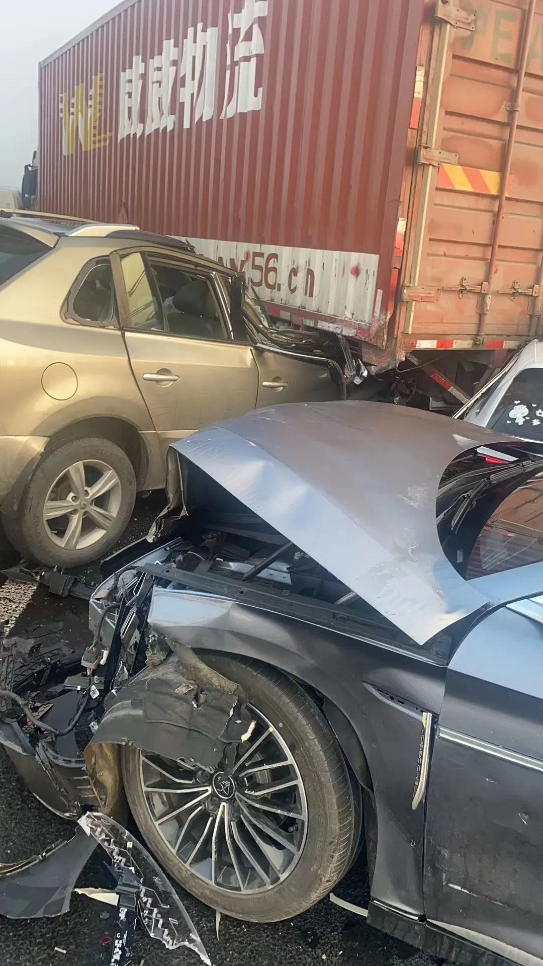 造成多起多车碰擦事故