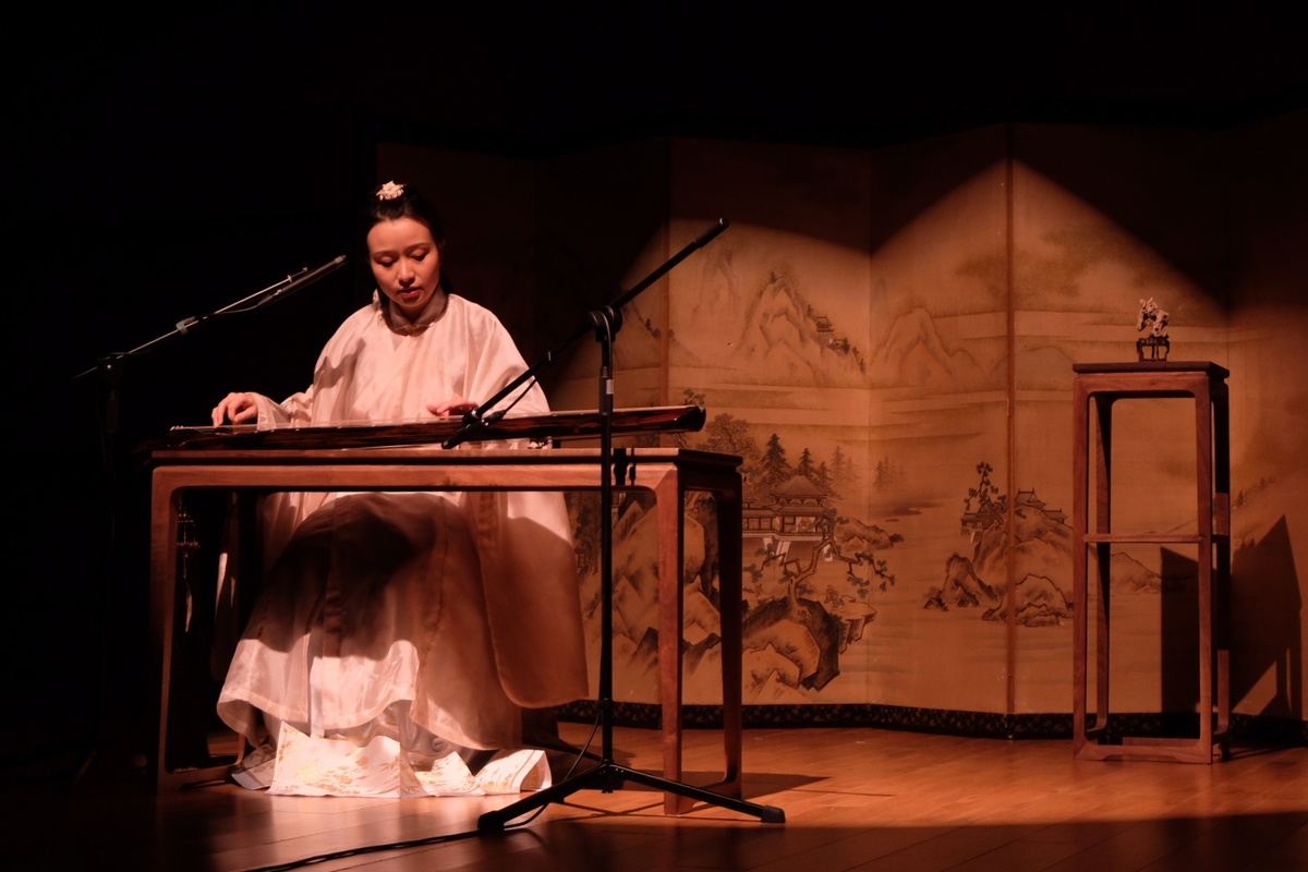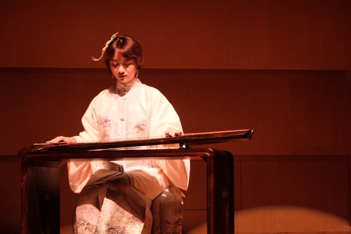 本次演出现场,首期学员们为观众表演了《桃李园序》《山水情》《阳光三叠》《醉渔唱晚》等曲目。据了解,这些学员是从近千人报名者当中遴选40名在琴界有一定影响力,或有发展潜质的艺术家,22号到26号在艺术院开班培训,最后才集结成这场汇报演出。