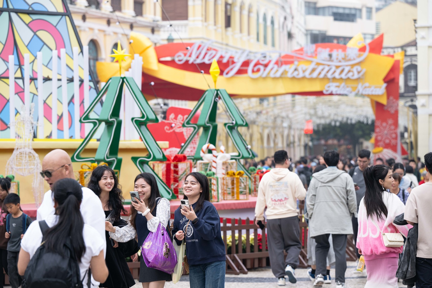 2023年12月31日,旅客在澳门议事亭前地游览。(新华社)