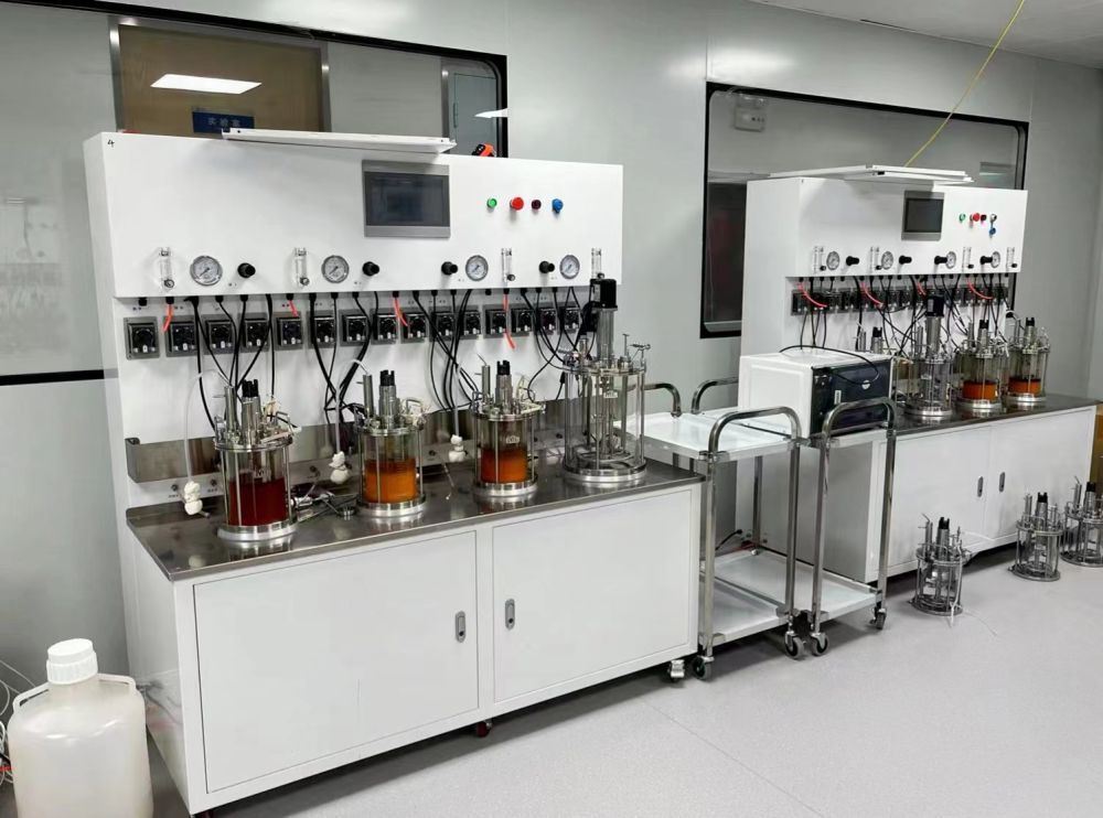 在元一生物的实验室里,一套8联罐发酵系统格外醒目。橙色的发酵液在罐内旋转,空气中弥漫着酵母的微甜味道。