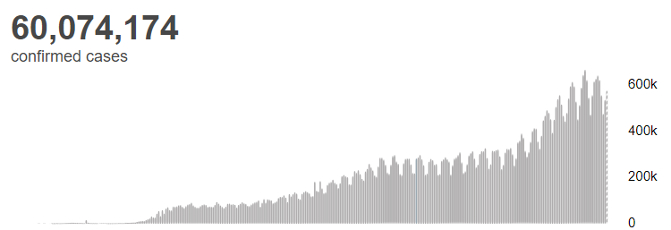 根据世卫组织最新实时统计数据,截至欧洲中部时间11月26日18时38分(北京时间11月27日1时38分),全球累计新冠肺炎确诊病例60074174例,累计死亡病例1416292例。26日全球新冠肺炎确诊病例新增577198例,死亡病例新增11263例。