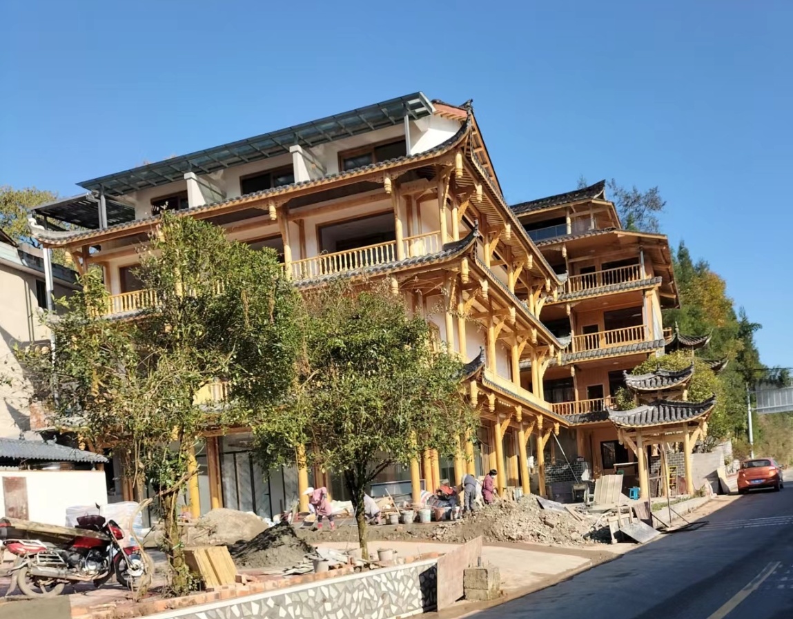 在张松的帮助下,200万元的民宿改造贷款迅速到位。2023年12月18日,一座崭新的中式仿古建筑落成。石璐露精心布置,准备迎接为“瓦屋山冰雪节”而来的游客。