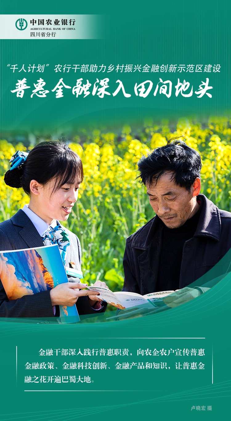 农行金融干部深入践行普惠职责,向农企农户宣传普惠金融政策、金融科技创新、金融产品和知识,让普惠“金融之花”开遍巴蜀大地。