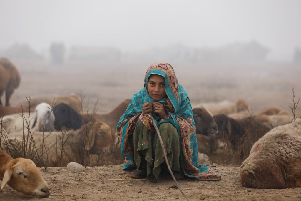 1月5日,在巴基斯坦白沙瓦,一名女孩在晨雾中牧羊。