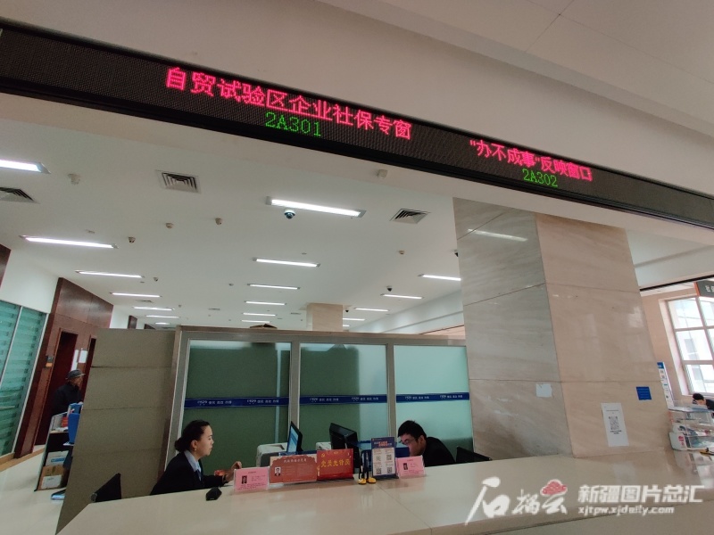 2023年11月17日,在乌鲁木齐市社会保险中心经济技术开发区(头屯河区)分中心办事大厅,专门设置了自贸试验区企业社保专窗。(资料图)