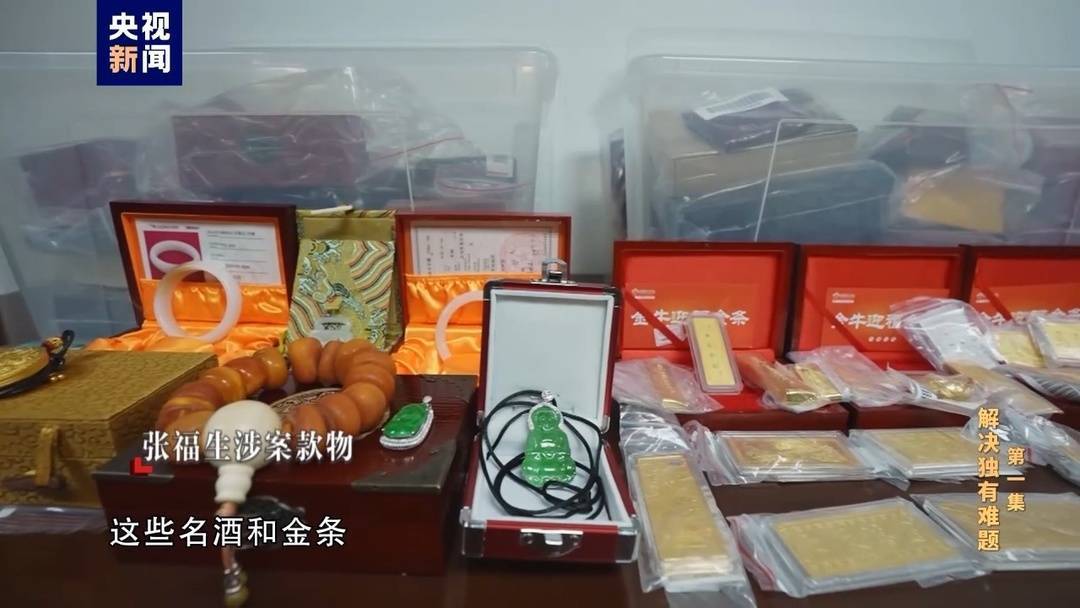对张福生采取留置措施后,专案组从他家中查获了大量茅台酒,还有多件黄金制品。