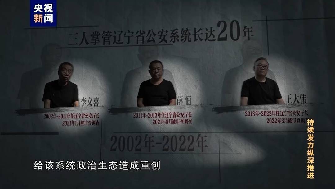王大伟,曾任辽宁省公安厅长近十年之久,2022年3月被立案审查调查。而他的前两任辽宁省公安厅长李文喜、薛恒,也已在2021年落马。他们三人相继掌管辽宁省公安系统长达20年,严重违纪违法行为给该系统政治生态造成重创。