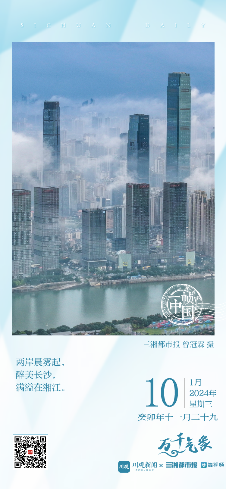 今天的《一帧中国》,川观新闻联合三湘都市报,带您来到长沙,图览美丽的湘江。古诗有云“湘江烟水深,沙岸隔枫林”,如今的湘江两岸高楼林立,一派现代化图景。
