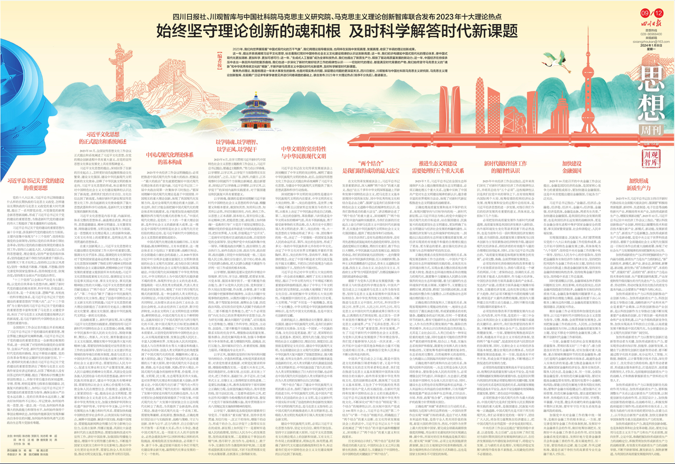 2023年,我们向世界展现着“中国式现代化的万千气象”,我们用理论指导着实践,也同样在实践中发现真理、发展真理,收获了丰硕的理论创新成果。聚焦热点理论,既是梳理这一年来大事发生的脉络,也是对现实焦点问题、深层理论问题的更深层关注。四川日报社、川观智库与中国社科院马克思主义研究院、中国社科院马克思主义理论创新智库,在前期广泛征求专家学者意见并进行问卷调查的基础上,联合发布“2023年十大理论热点”(排序不分先后)。
