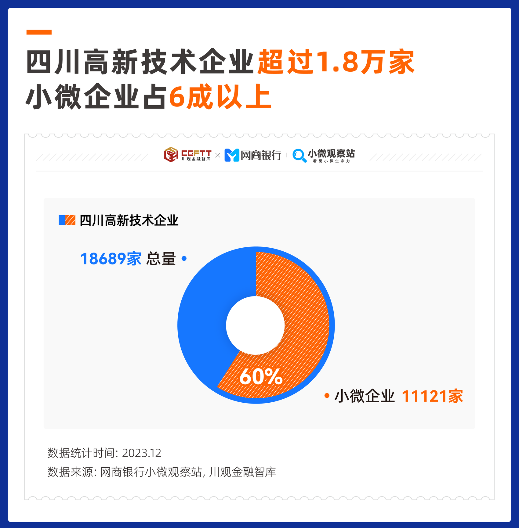 与此相关联的另一组数据是,网商银行小微观察站数据显示,四川省高新技术小微企业数量全国第六,占整体高新技术企业数量的六成。