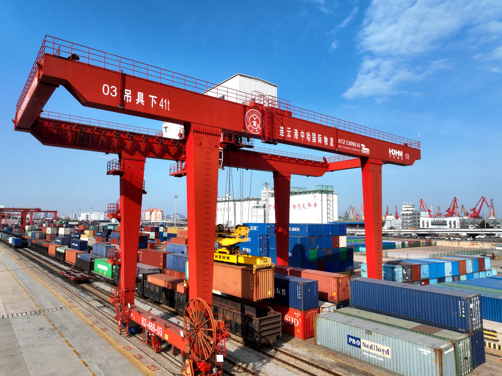 江苏连云港:中欧班列装卸忙 全力冲刺开门红