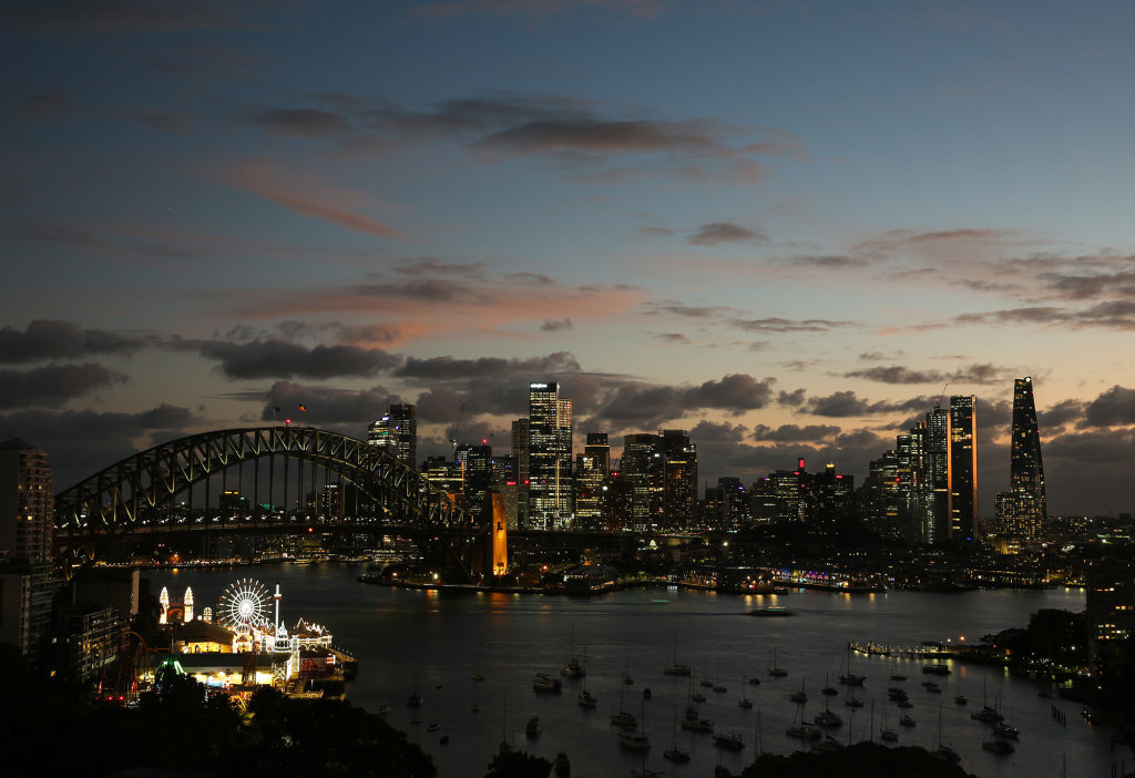 这是1月5日拍摄的澳大利亚悉尼海港大桥及其周边的黄昏景色。