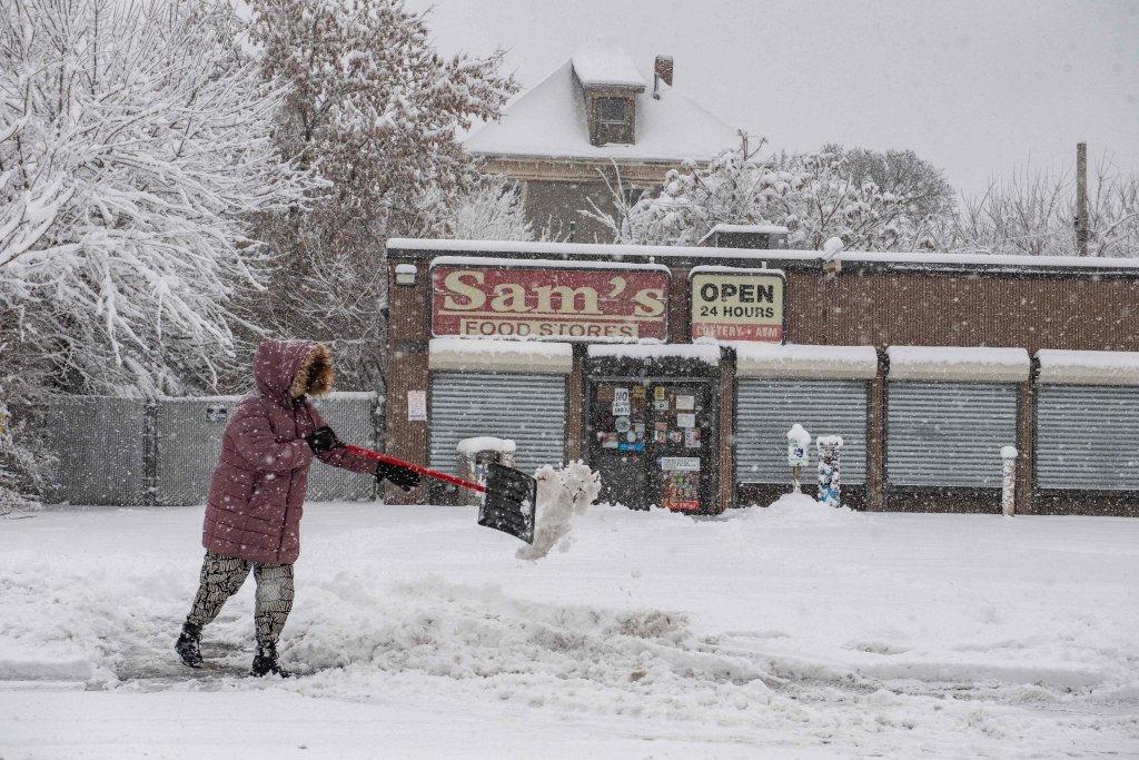 近日,美国东北部地区遭遇冬季风暴带来的降雪,部分地区出行受阻。