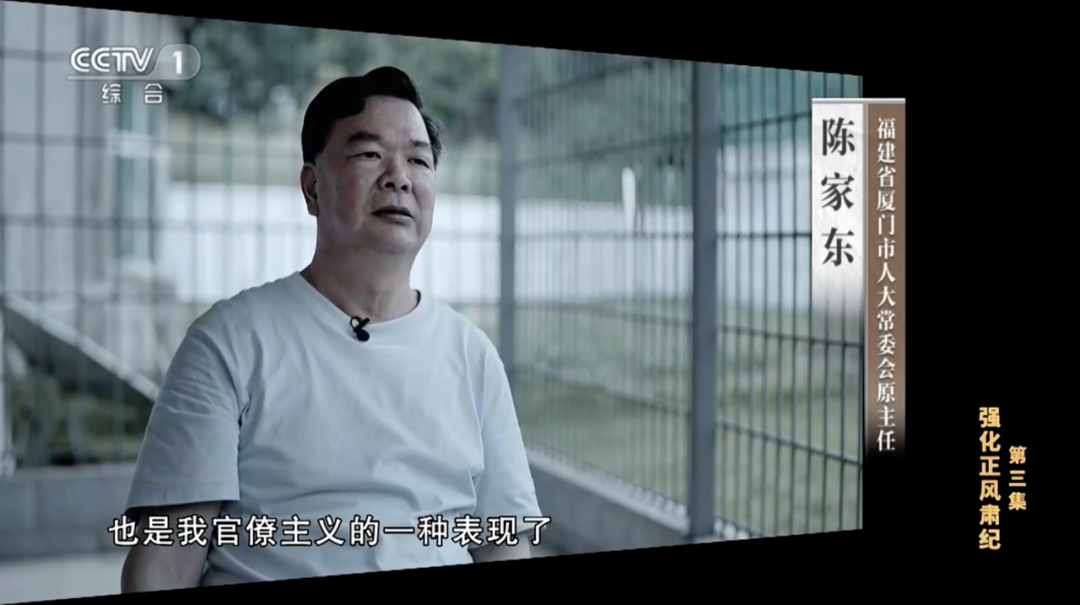 1月8日晚,电视专题片《持续发力 纵深推进》第三集《强化正风肃纪》播出,披露了福建省厦门市人大常委会原主任陈家东搞形式主义、官僚主义的情节。