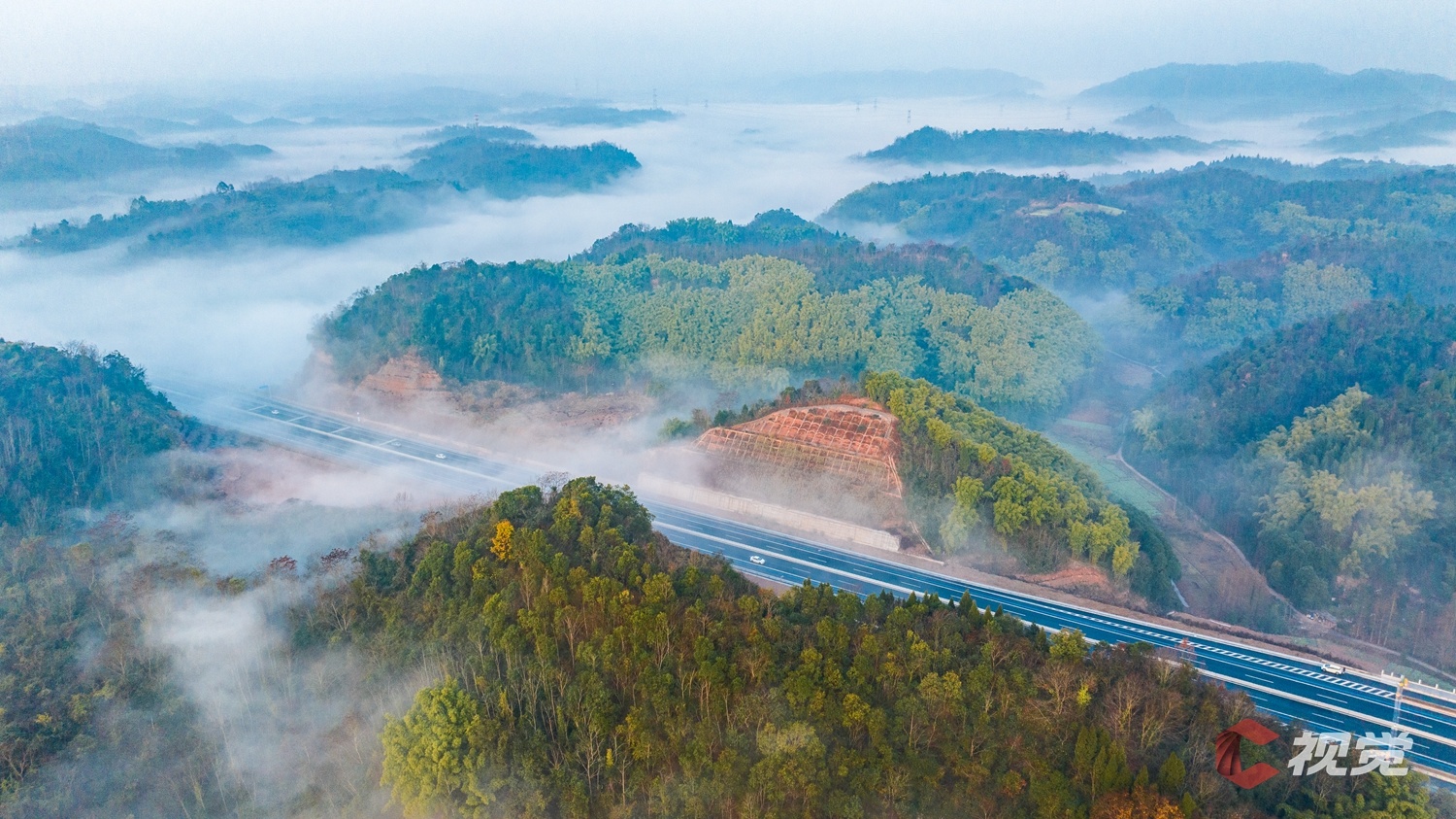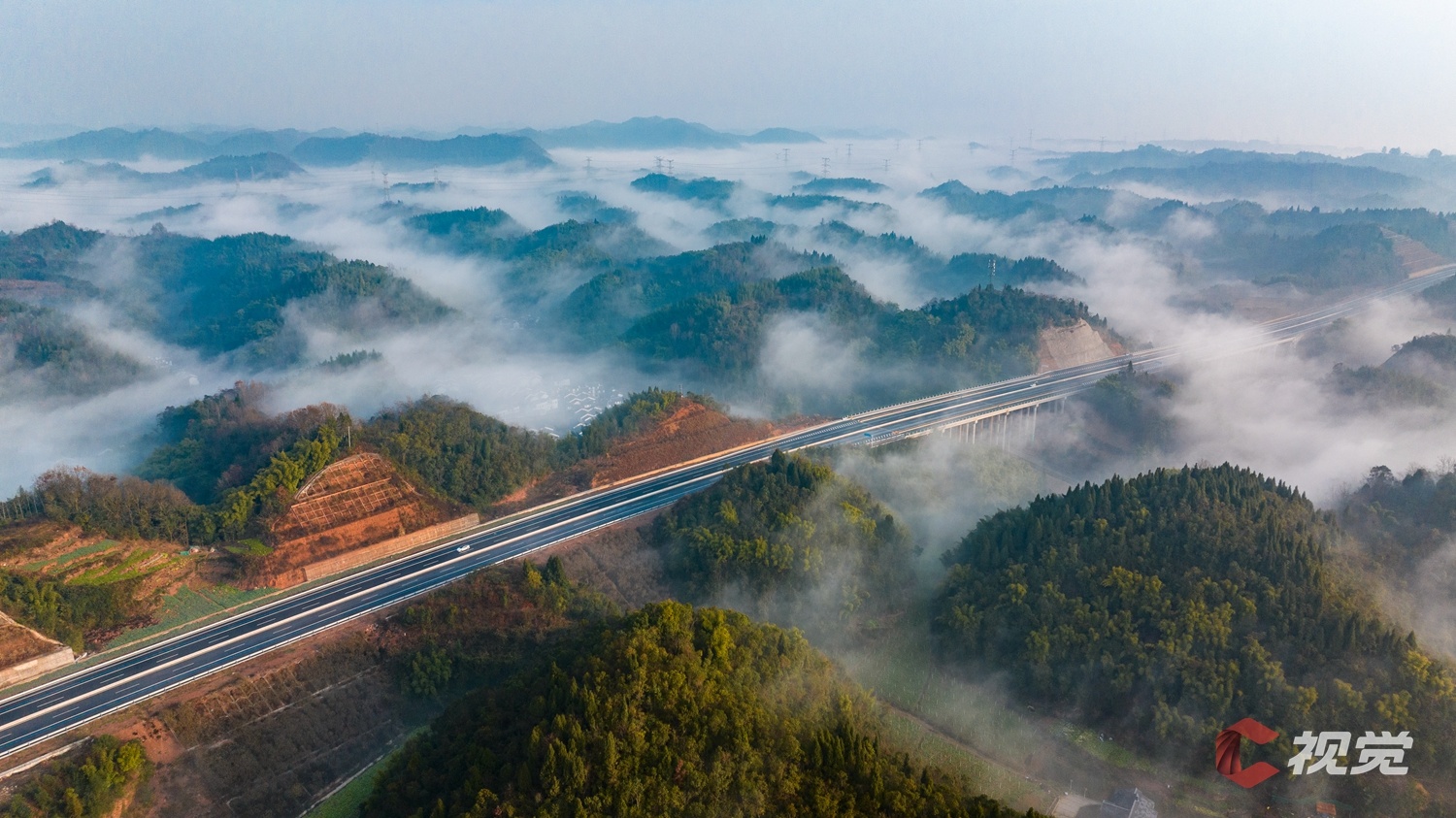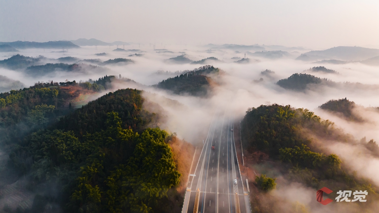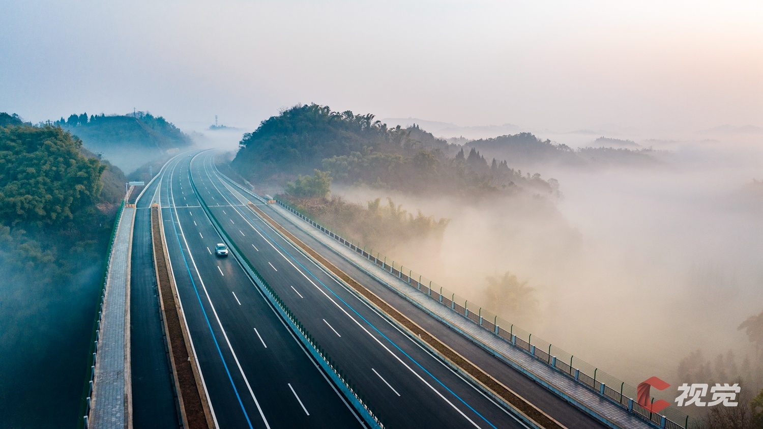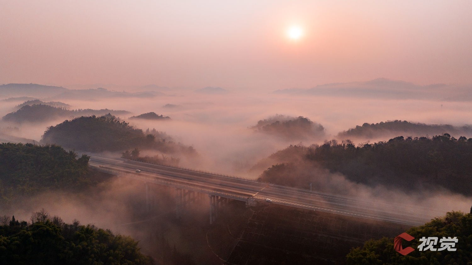 1月9日清晨,成都市大邑县北二环云雾缭绕,周围层峦叠嶂,山峰在云雾中时隐时现,绵延不绝,北二环犹如一条巨龙穿梭其中,美不胜收。