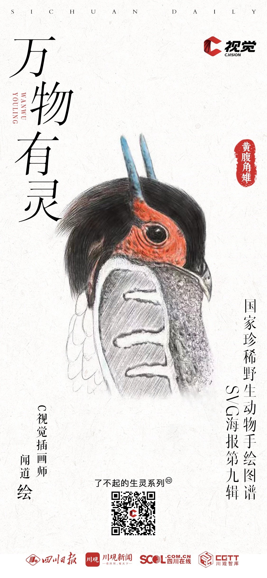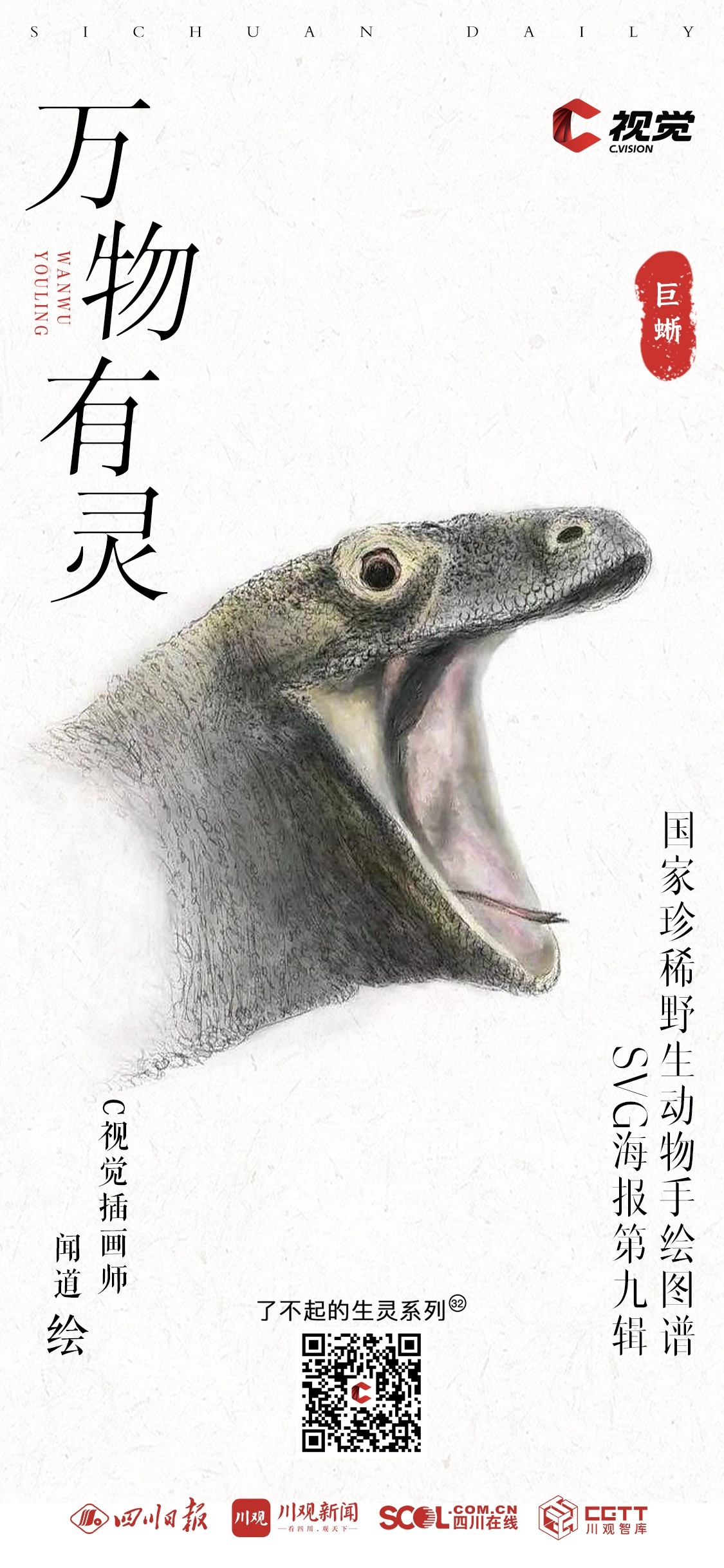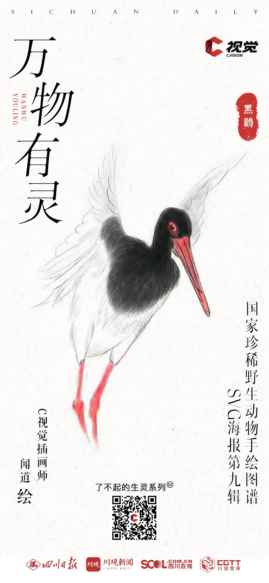 “C 视觉•了不起的生灵”栏目《国家一级保护动物手绘图谱》手绘插画系列,每两周一期。栏目将与C视觉插画师携手,通过简洁明快的线条、多元化的视听表达,呈现各类珍稀动物的生动形象,展现我国生物多样性的魅力与活力。