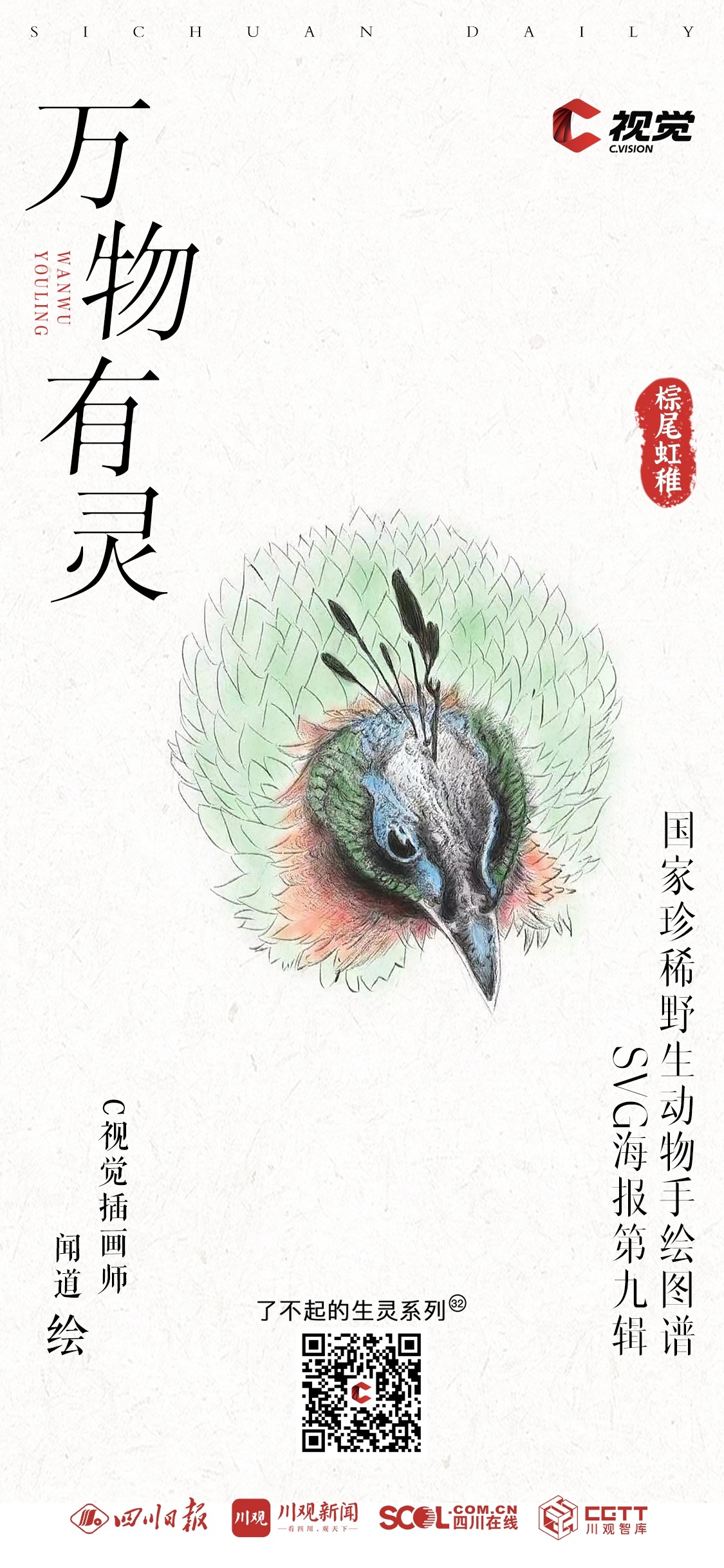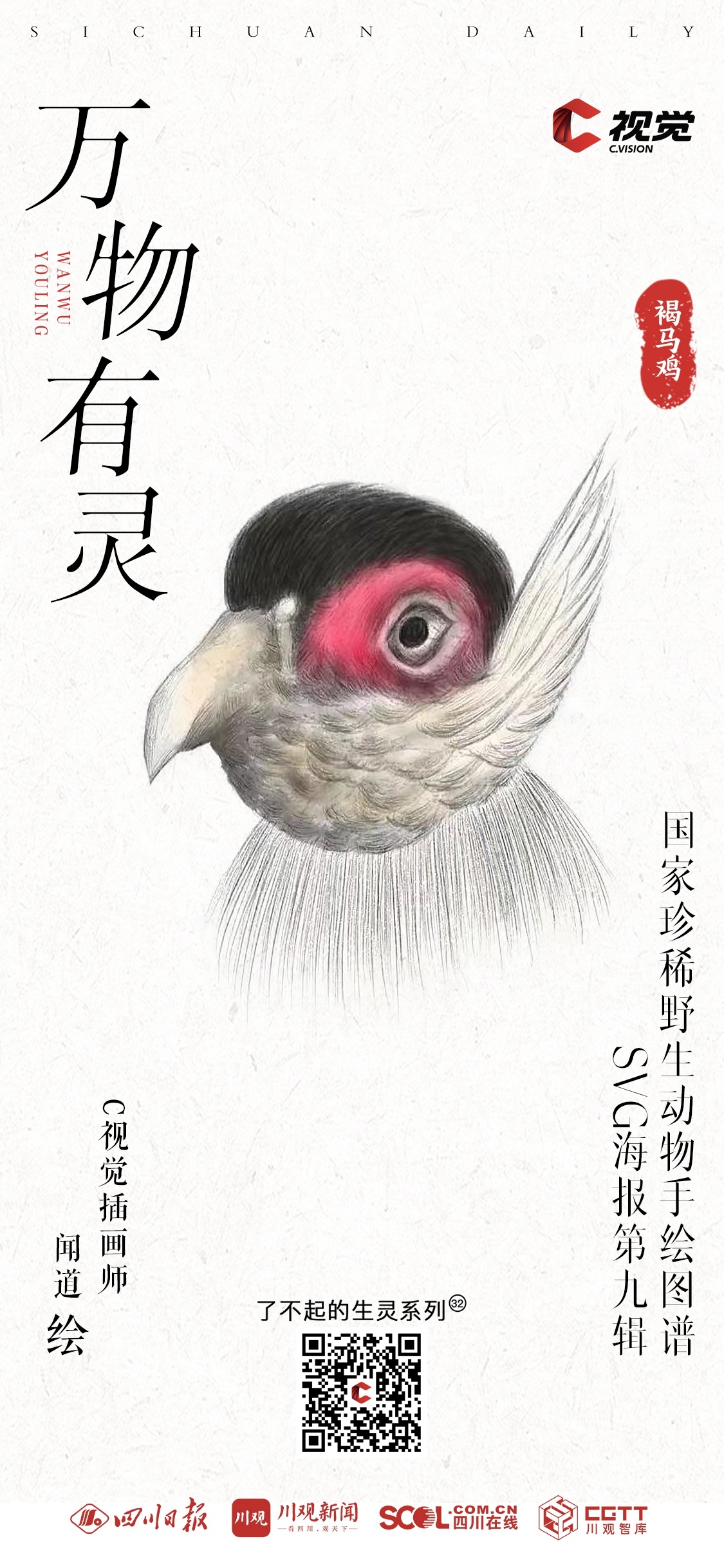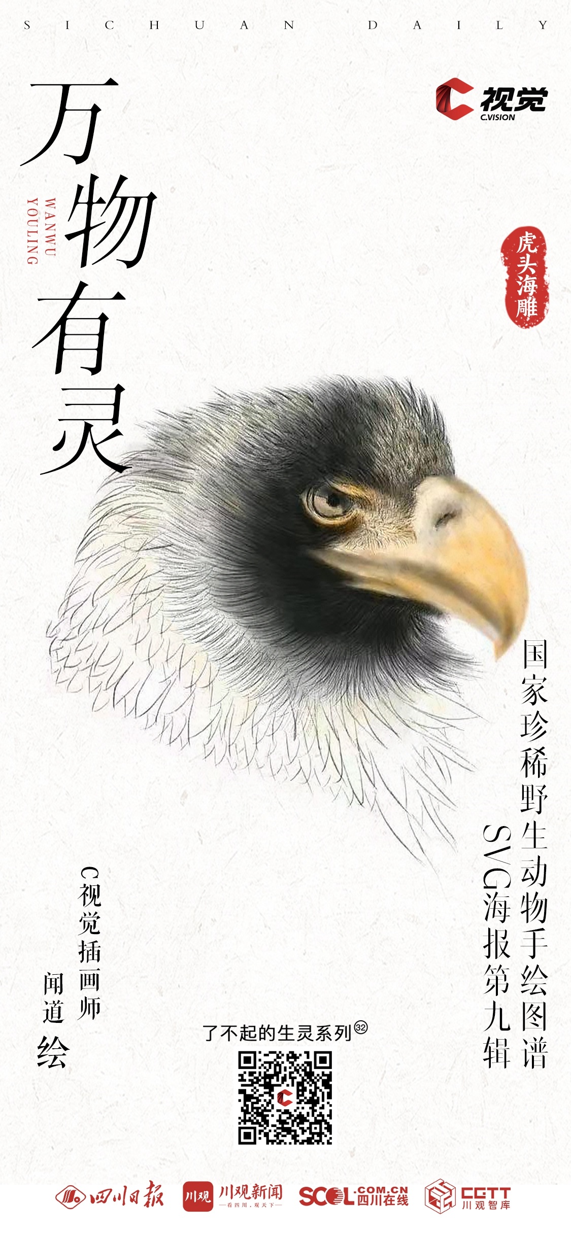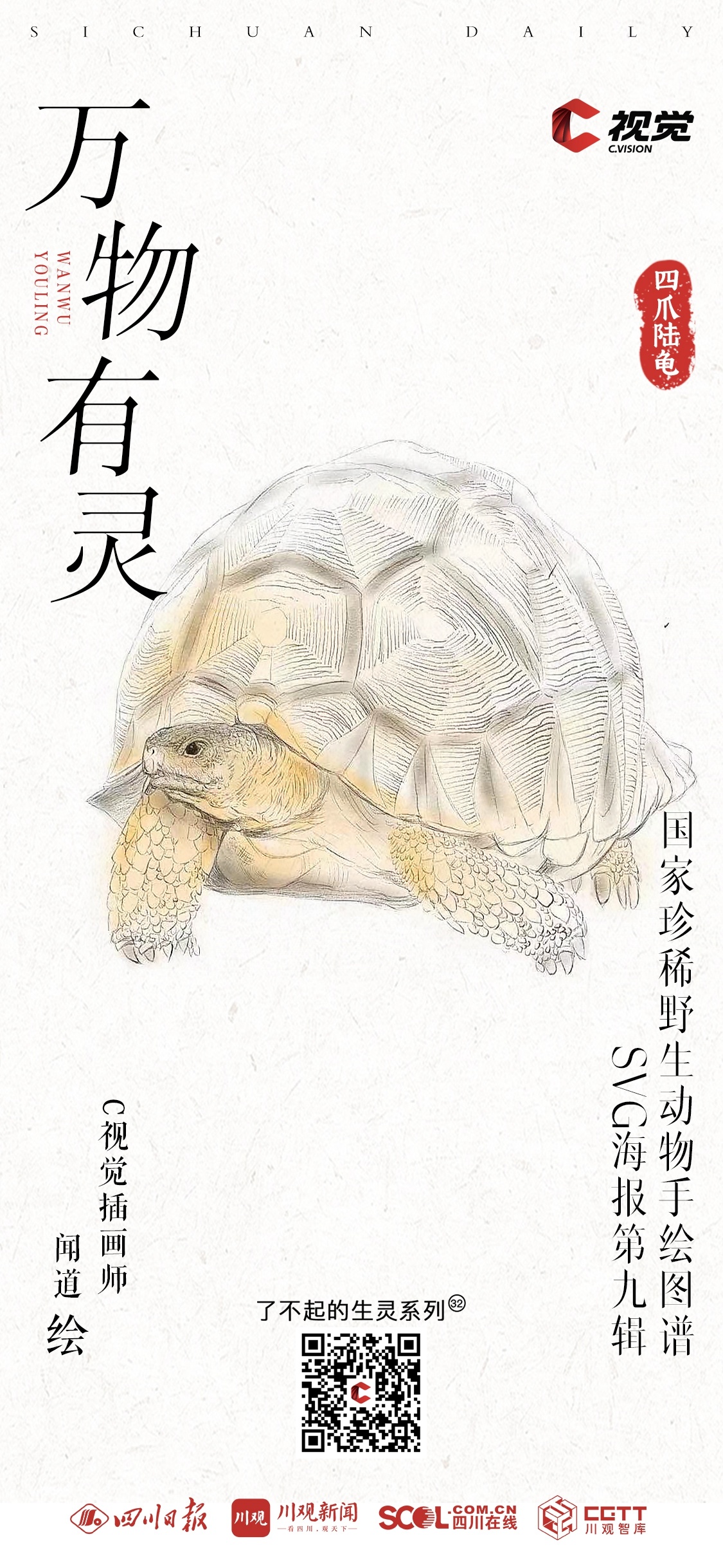 “C 视觉•了不起的生灵”栏目《国家一级保护动物手绘图谱》手绘插画系列,每两周一期。栏目将与C视觉插画师携手,通过简洁明快的线条、多元化的视听表达,呈现各类珍稀动物的生动形象,展现我国生物多样性的魅力与活力。